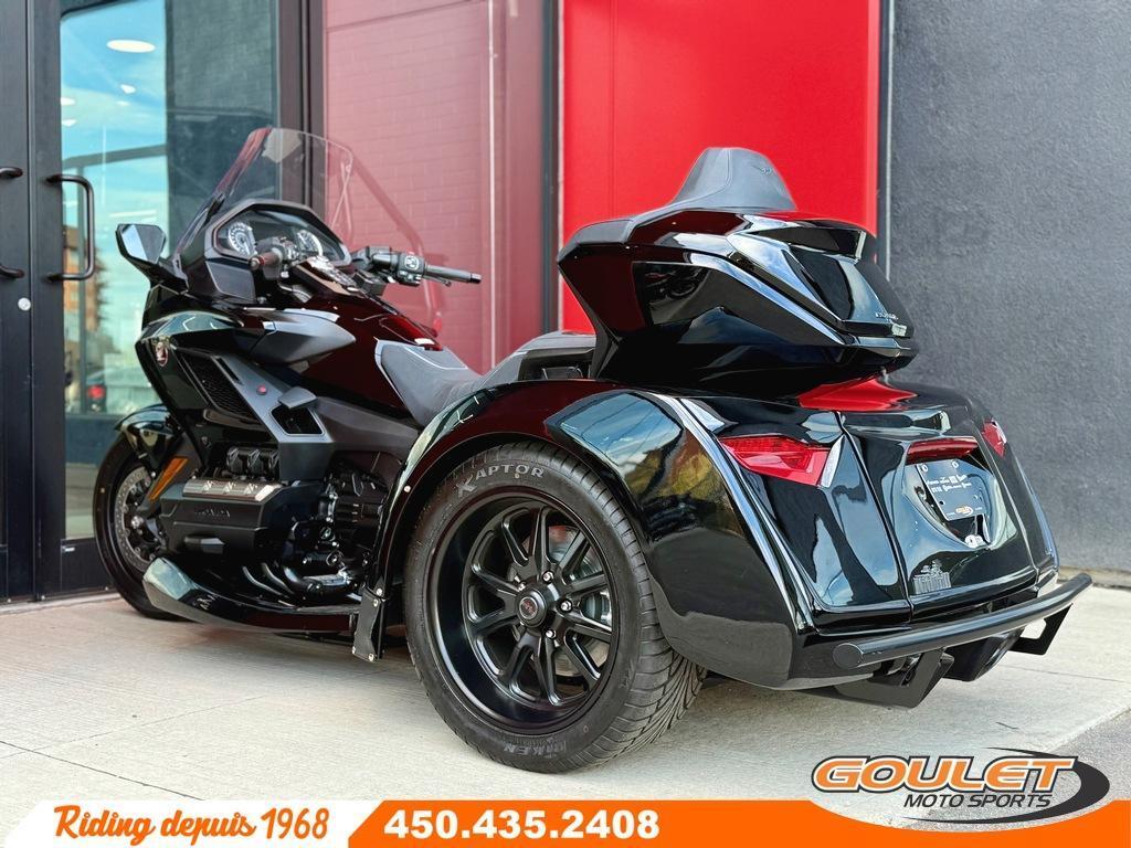HONDA GOLDWING GL1800 TOUR DCT TRIKE NEUF \*\*\* Transformation Trike Goldwing flambant neuf avec transmission automatique - Clé en main, prêt à partir en 24hr - Pas d'attente \*\*\* Trike avec le kit Condor IRS de Motor Trike qui est prête à partir. cette Honda Goldwing GL1800 DCT est munie de la transmission automatique 7 vitesses. Cette moto viens tout juste d'être assemblé professionellement avec un Kit Motor Trike Condor à suspension indépendante et ajustable. Le Kit de trike par la compagnie Motor Trike est le meilleur sur le marché grâce à sa suspension indépendante qui reste stable en virage. Son système unique à double amortissement avec des ballons d'air pour l'ajustement de la suspension arrière. Les freins sont à disques et la renverse est incluse avec la moto. - Kit Motor Trike avec suspension indépendante IRS et compresseur à air pour l'ajustement de la suspension - Option mag noir Americain Racing de 17pc inclus. - Avance de fourche pour facilité la conduite inclus - Marche pieds avant inclus - phares antibrouillard au LED (Fog) optionnel inclus - Coffre arrière avc lumière intérieure et tapis intérieur contour - Bumper blackchrome arrière - Frein à main (Parking brake), - ABS arrière inclus Moteur : six cylindres opposés horizontalement de 1 833 cm3 pour environ 124,7 chevaux Renverse et mode front walk inclus sur cette Goldwing Trike Transmission DCT à double embrayage et 7 vitesses: La transmission offre un mode automatique et manuel Suspension : avant à double triangulation, Freins : double disque à l'avant, double disques arrière et ABS Caractéristiques : Apple CarPlay, Android Auto, réglage électrique du pare-brise, modes de conduite, antipatinage, keyless entry, lumière au LED, banc et poignées chauffante Cette unité est chez Goulet Moto Sports de Ste-Thérèse. Téléphonez au 450.435.2408 Possibilité de financement avec plusieurs institutions financières. 2ième chance au crédit disponible. Goulet Moto Sports est votre concessionnaire moto depuis 1968. Fier représentant officiel des marques HONDA, APRILIA, MOTO GUZZI, VESPA, PIAGGIO, KTM, NIU, SURRON et URAL pour le grand Montréal. Nous avons un énorme choix de moto usagés inspectées par nos professionnels. 2 adresses pour vous servir, soit à Sainte-Thérèse (450.435.2408) et Saint-Jérôme (450.431.6622). Goulet Moto Sports ne peut être tenu responsable d'une omission, d'un délai ou d'une erreur de transcription de l'information. Le prix affiché reflète la condition de l'unité. Pour différentes raisons les prix peuvent différer de ceux indiqués en ligne. Les données sont affichées à titre indicatif seulement et ne peuvent être considérées comme une information contractuelle. Nous vous encourageons vivement à nous consulter pour plus de détails avant de vous déplacer. Des frais tels que taxes, immatriculation, administrations ou autres peuvent s'appliquer. Se compare avantageusement à un trike California Sidecar (CSC), Harley Davidson Trike Tri Glide, BRP Spyder Essence, Transmission: Manuelle, 6 vitesses, Système de refroidissement: Refroidi au liquide, 6 cylindres, 125.0 CV, 1832.0 CC, Garantie: 3 ans ---------------------- NEW HONDA GOLDWING GL1800 TOUR DCT TRIKE \*\*\* Brand new Goldwing Trike conversion with automatic transmission - Turnkey, ready to go in 24 hours - No waiting \*\*\* Trike with the Condor IRS kit from Motor Trike, ready to go. This Honda Goldwing GL1800 DCT is equipped with a 7-speed automatic transmission. This bike has just been professionally assembled with a Condor Motor Trike Kit with independent and adjustable suspension. The trike kit from Motor Trike is the best on the market thanks to its independent suspension that remains stable when cornering. Its unique dual-shock system features air balloons for rear suspension adjustment. The brakes are disc brakes, and the reverse is included with the bike. - Motor Trike Kit with IRS independent suspension and air compressor for suspension adjustment - Optional 17-piece American Racing black mag kit included. - Fork advance for easier steering included - Front footboards included - Optional LED fog lights included - Rear trunk with interior lighting and contoured interior carpet - Blackchrome rear bumper - Parking brake - Rear ABS included Engine: 1,833 cc horizontally opposed six-cylinder engine producing approximately 124.7 horsepower Reverse and front walk mode included on this Goldwing Trike 7-speed dual-clutch DCT transmission: The transmission offers automatic and manual modes Suspension: Double wishbone front Brakes: Dual front discs, dual rear discs and ABS Features: Apple CarPlay, Android Auto, electric windshield adjustment, riding modes, traction control, keyless entry, LED lights, heated seat and grips This unit is at Goulet Moto Sports in Ste-Thérèse. Call 450.435.2408 Financing available with several financial institutions. Second chance credit available. Goulet Moto Sports has been your motorcycle dealership since 1968. Proud official representative of the HONDA, APRILIA, MOTO GUZZI, VESPA, PIAGGIO, KTM, NIU, SURRON, and URAL brands for the greater Montreal area. We have a huge selection of used motorcycles inspected by our professionals. We have two locations to serve you: Sainte-Thérèse (450.435.2408) and Saint-Jérôme (450.431.6622). Goulet Moto Sports cannot be held responsible for any omissions, delays, or transcription errors. The price displayed reflects the condition of the unit. For various reasons, prices may differ from those indicated online. The data displayed is for informational purposes only and should not be considered contractual information. We strongly encourage you to contact us for more details before traveling. Fees such as taxes, registration, administration, and other charges may apply. Compares favorably to a California Sidecar (CSC) trike, Harley Davidson Trike Tri Glide, or BRP Spyder. Gasoline, Transmission: Manual, 6 speeds, Co
