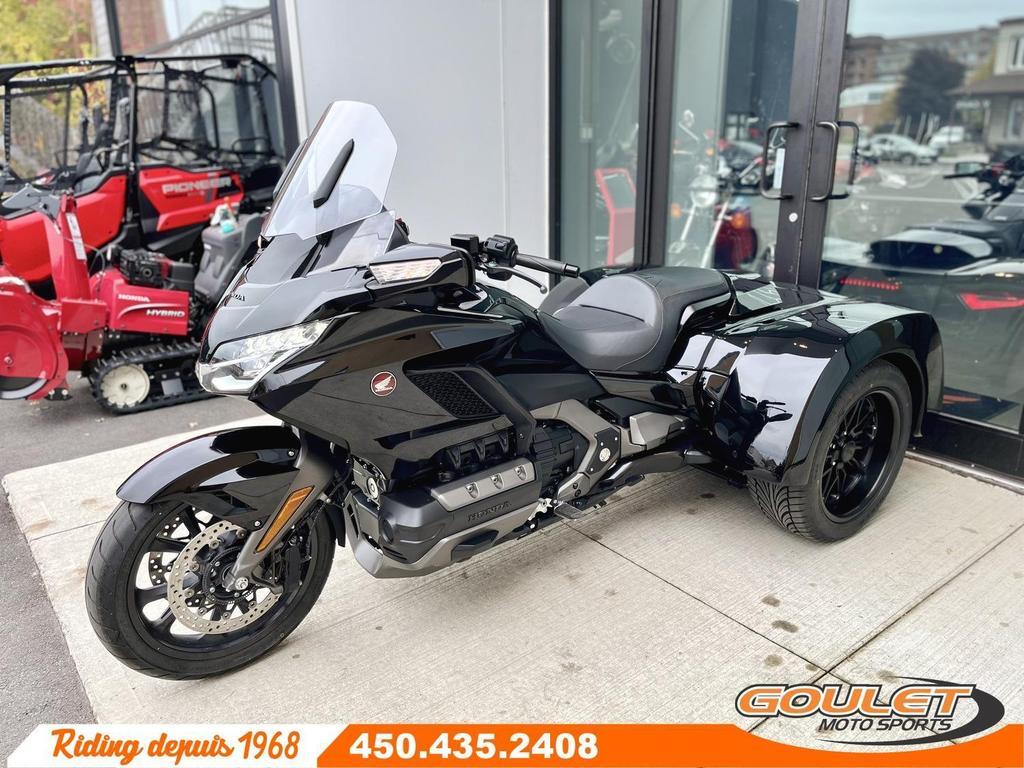 HONDA GOLDWING GL1800B TRIKE NEUF \*\*\* HONDA GOLDWING MOTOR TRIKE IRS FLAMBANT NEUF - PRÊT A PARTIR EN 24H - CLÉ EN MAIN \*\*\* Nouveau sur le marché, cette Honda GL1800B type Bagger de 2019 neuve viens tout juste d'être assemblé professionellement avec un Kit Motor Trike Condor à suspension indépendante et ajustable. Le Kit de trike par la compagnie Motor Trike est le meilleur sur le marché grâce à sa suspension indépendante qui reste stable en virage. Son système unique à double amortissement avec amortisseur standard et aussi des ballons d'air pour l'ajustement de la suspension. Les freins sont à disques et la renverse est incluse avec la moto. - Kit Motor Trike avec suspension indépendante IRS avec compresseur à air ajustable - Option mag noir "Americain Racing" de 17pc inclus. - Coffre arrière avc lumière intérieure et tapis intérieur contour - Bumper blackchrome arrière - Frein à main (Parking brake) - ABS arrière Possibilité de top case arrière pour en faire un Goldwing Tour (ou dossier passager) Moteur : six cylindres opposés horizontalement de 1 833 cm3 pour environ 124,7 chevaux Transmission : manuelle à 6 vitesses Suspension : avant à double triangulation, Freins : double disque à l'avant, simple disque à l'arrière, ABS Caractéristiques : Apple CarPlay, Android Auto, réglage électrique du pare-brise, modes de conduite, antipatinage, keyless entry, lumière au LED Cette unité est chez Goulet Moto Sports de Ste-Thérèse. Téléphonez au 450.435.2408 Possibilité de financement avec plusieurs institutions financières. 2ième chance au crédit disponible. Goulet Moto Sports est votre concessionnaire moto depuis 1968. Fier représentant officiel des marques HONDA, APRILIA, MOTO GUZZI, VESPA, PIAGGIO, KTM, NIU, SURRON et URAL pour le grand Montréal. Nous avons un énorme choix de moto usagés inspectées par nos professionnels. 2 adresses pour vous servir, soit à Sainte-Thérèse (450.435.2408) et Saint-Jérôme (450.431.6622). Goulet Moto Sports ne peut être tenu responsable d'une omission, d'un délai ou d'une erreur de transcription de l'information. Le prix affiché reflète la condition de l'unité. Pour différentes raisons les prix peuvent différer de ceux indiqués en ligne. Les données sont affichées à titre indicatif seulement et ne peuvent être considérées comme une information contractuelle. Nous vous encourageons vivement à nous consulter pour plus de détails avant de vous déplacer. Des frais tels que taxes, immatriculation, administrations ou autres peuvent s'appliquer. Se compare avantageusement a un trike California Sidecar (CSC), Harley Davidson Trike tri glide, BRP Spyder Essence, Transmission: Manuelle, 6 vitesses, Système de refroidissement: Refroidi au liquide, 6 cylindres, 125.0 CV, 1832.0 CC, Garantie: 3 ans ---------------------- NEW HONDA GOLDWING GL1800B TRIKE \*\*\* BRAND NEW HONDA GOLDWING IRS MOTOR TRIKE - READY TO GO \*\*\* New to the market, this brand new 2019 Honda GL1800B Bagger has just been professionally assembled with a Condor Motor Trike Kit with independent and adjustable suspension. This trike kit from Motor Trike is the best on the market thanks to its independent suspension that remains stable when cornering. Its unique dual-shock system features a standard shock absorber and air springs for suspension adjustment. The brakes are disc brakes, and the reverse is included with the bike. - Motor Trike Kit with IRS independent suspension and adjustable air compressor - 17-piece black "American Racing" mag option included. - Rear trunk with interior light and interior carpet trim - Blackchrome rear bumper - Parking brake Rear top case option to make it a Goldwing Tour (or passenger backrest) Engine: 1,833 cc horizontally opposed six-cylinder engine producing approximately 124.7 horsepower Transmission: 6-speed manual Suspension: Double wishbone front Brakes: Dual front discs, single rear discs, ABS Features: Apple CarPlay, Android Auto, power windshield adjustment, riding modes, traction control, keyless entry, LED lights This unit is available at Goulet Moto Sports in Ste-Thérèse. Call 450.435.2408 Financing available with several financial institutions. Second chance credit available. Goulet Moto Sports has been your motorcycle dealer since 1968. We are a proud official representative of HONDA, APRILIA, MOTO GUZZI, VESPA, PIAGGIO, KTM, NIU, SURRON, and URAL brands in Greater Montreal. We have a huge selection of used motorcycles inspected by our professionals. We have two locations to serve you: Sainte-Thérèse (450.435.2408) and Saint-Jérôme (450.431.6622). Goulet Moto Sports cannot be held responsible for any omission, delay, or transcription error. The price displayed reflects the condition of the unit. For various reasons, prices may differ from those indicated online. The data displayed is for informational purposes only and should not be considered contractual information. We strongly encourage you to contact us for more details before visiting. Fees such as taxes, registration, administration, and other charges may apply. Compares favorably to a California Sidecar (CSC) trike, Harley Davidson Trike tri glide, BRP Spyder Gasoline, Transmission: Manual, 6 speeds, Cooling System: Liquid cooling, 6 cylinders, 125.0 HP, 1832.0 CC, Warranty: 3 ans
