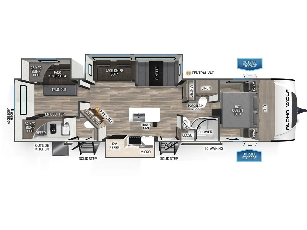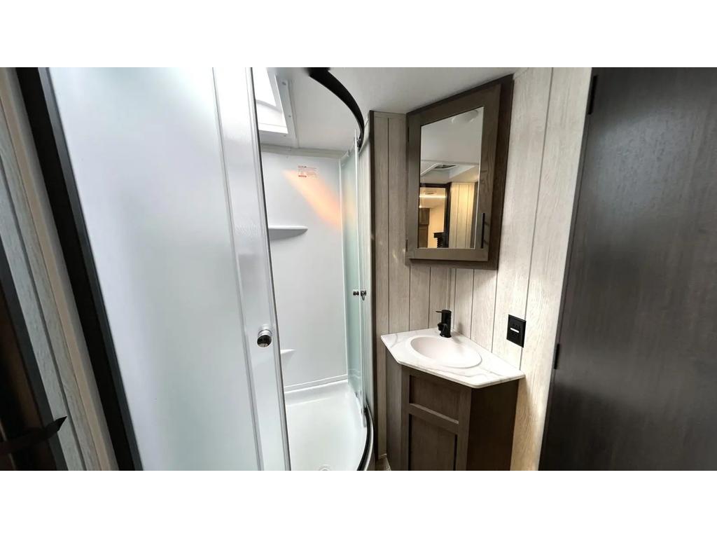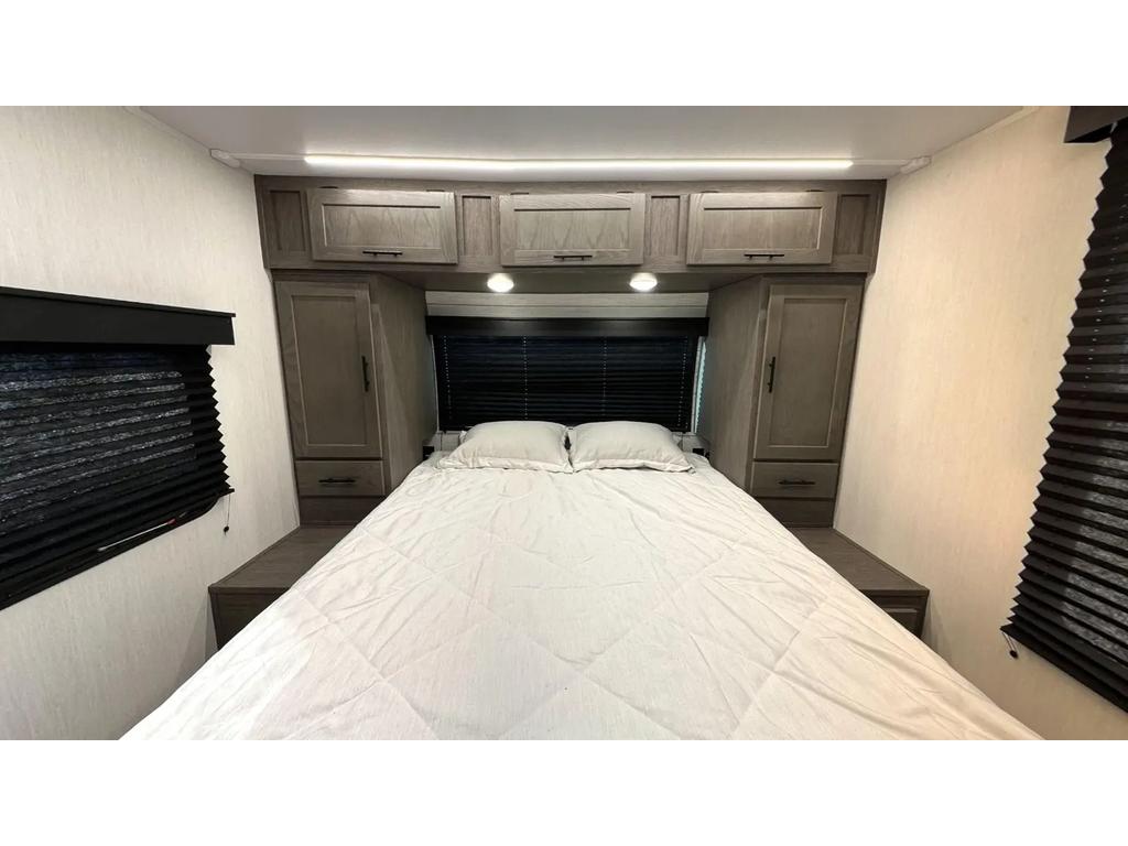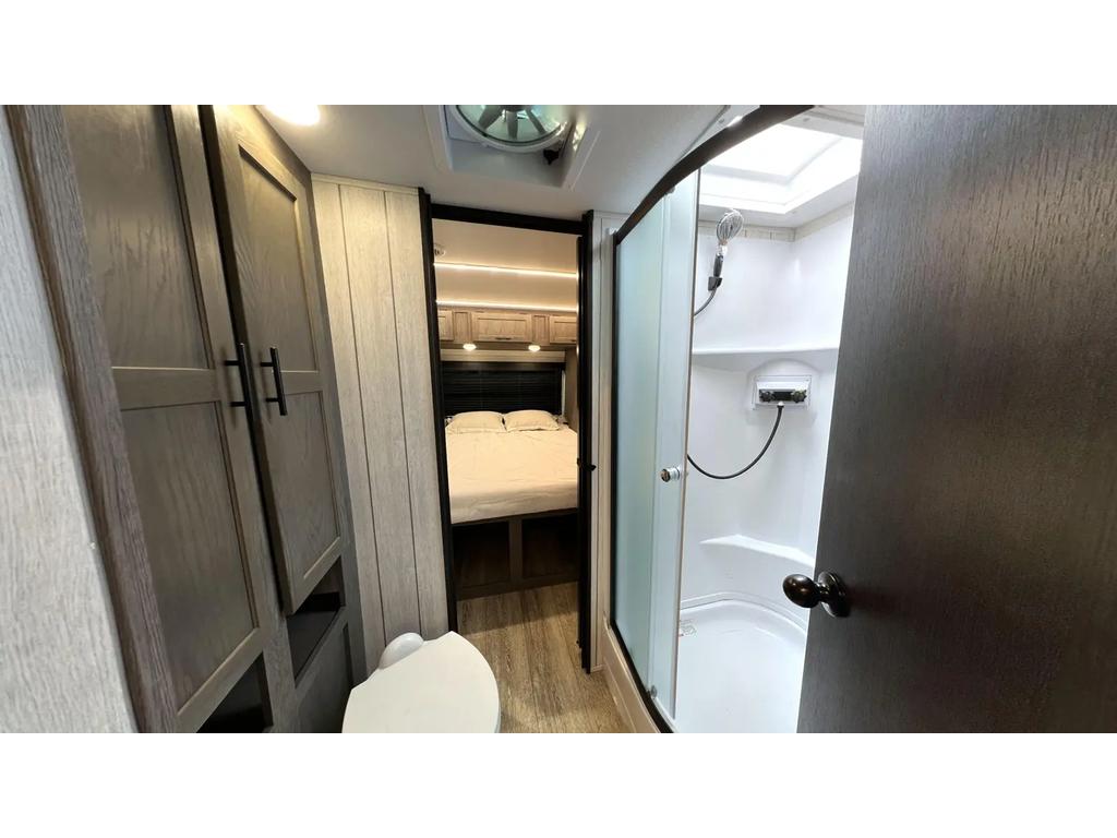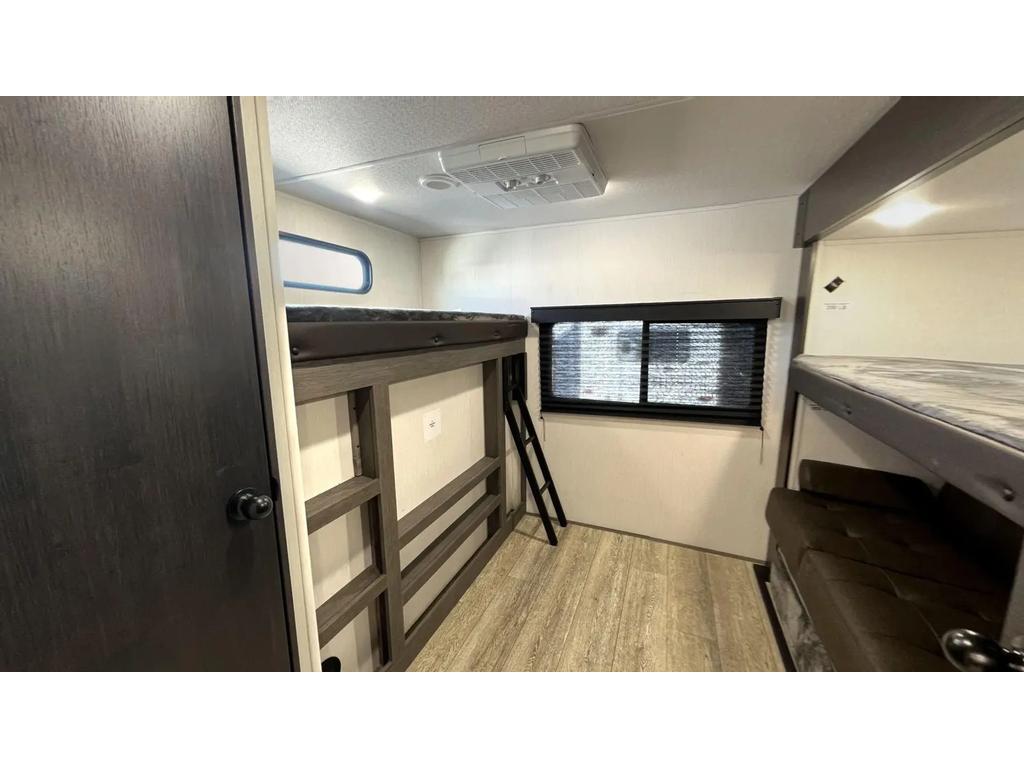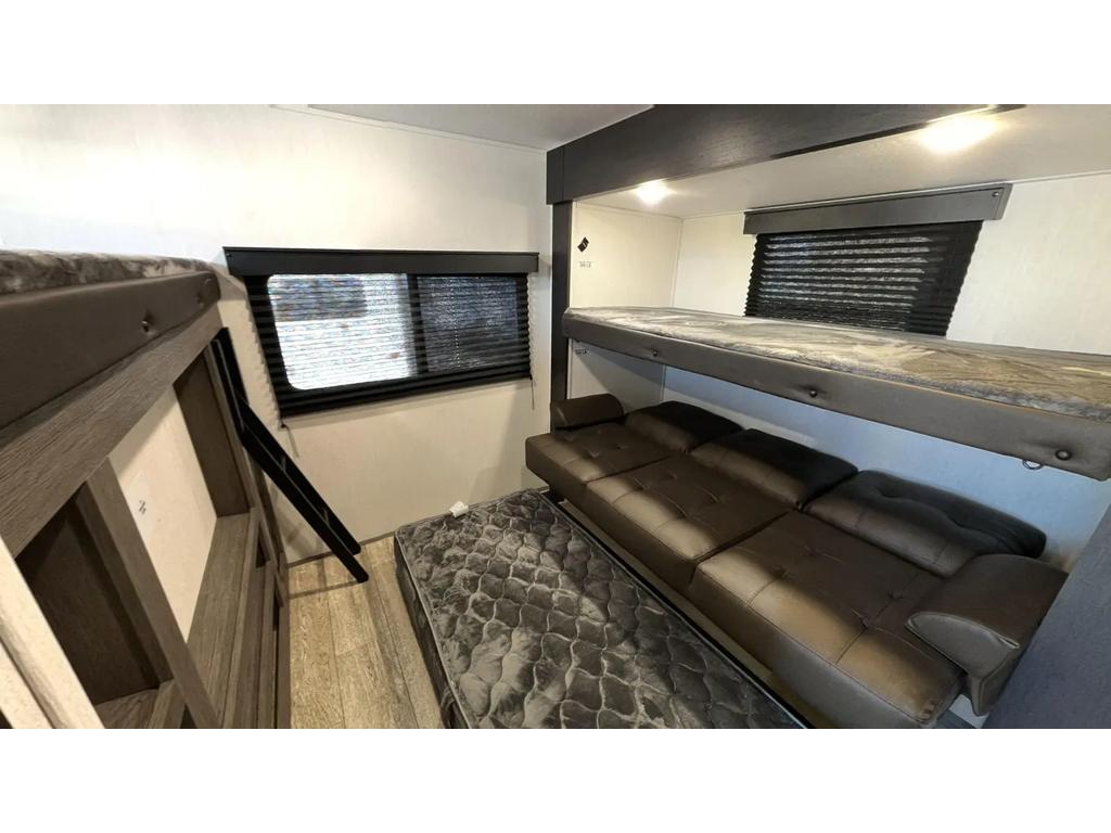 Du plaisir léger en famille ! L'Alpha Wolf 33BH de Forest River dispose d'un dortoir spacieux avec une demi-salle de bain, parfait pour les enfants ou les invités supplémentaires.