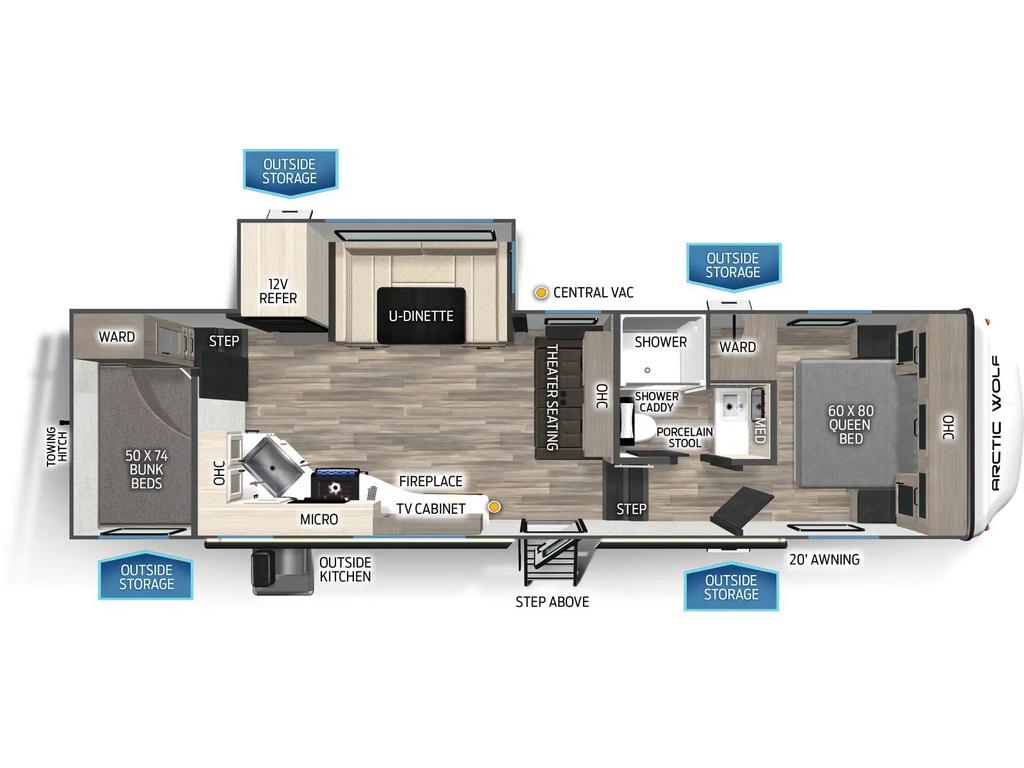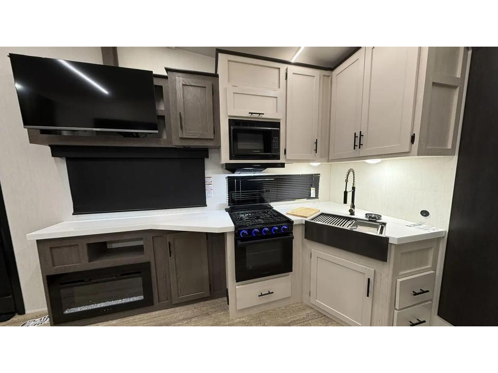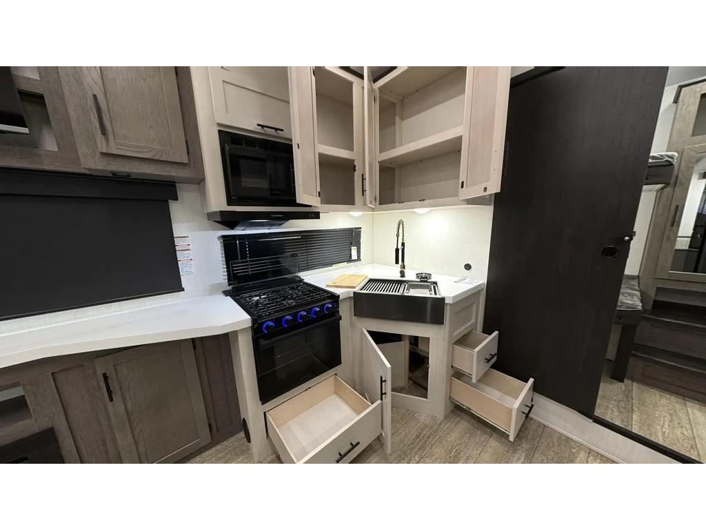 La climatisation de 15 000 BTU, la cuisine extérieure, la préparation du système de caméra de sécurité et la mise à niveau automatique à une touche pour une configuration facile sont également de série !