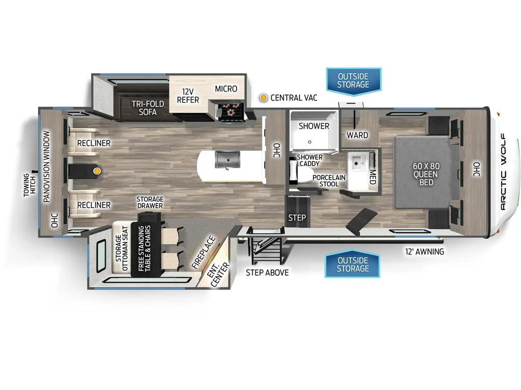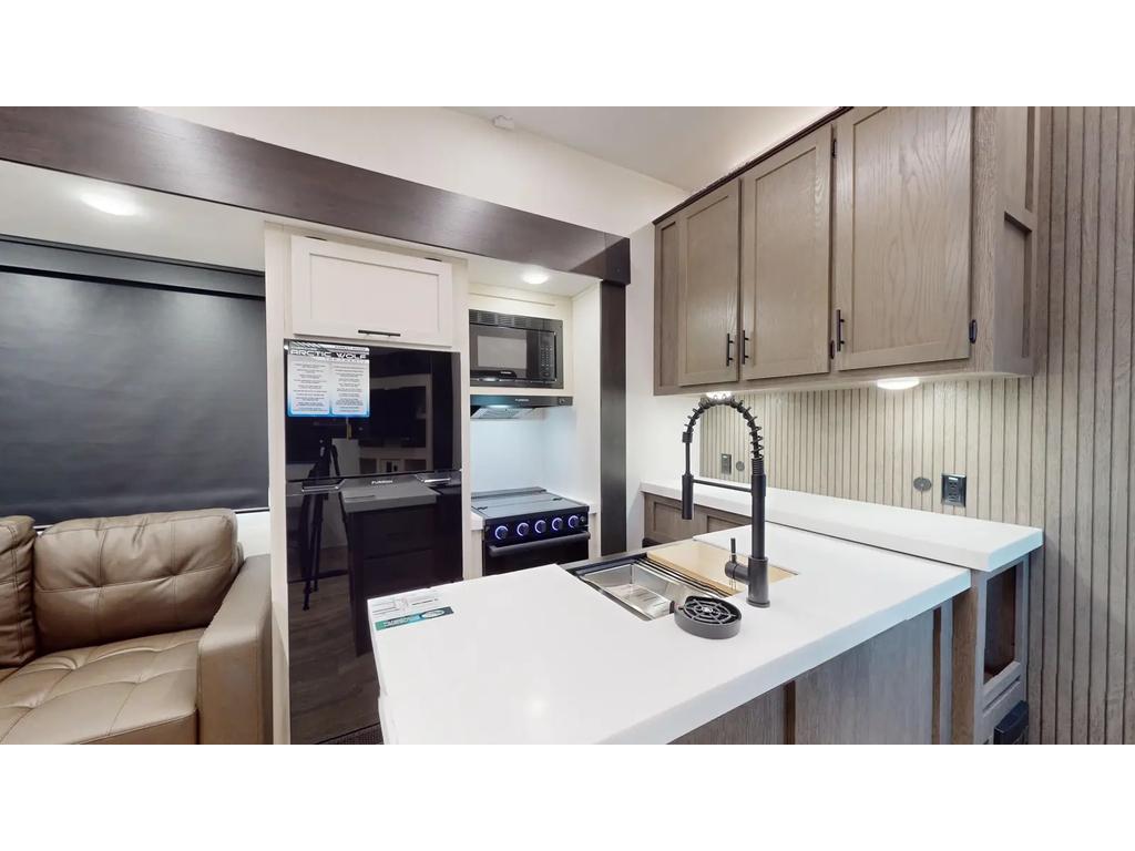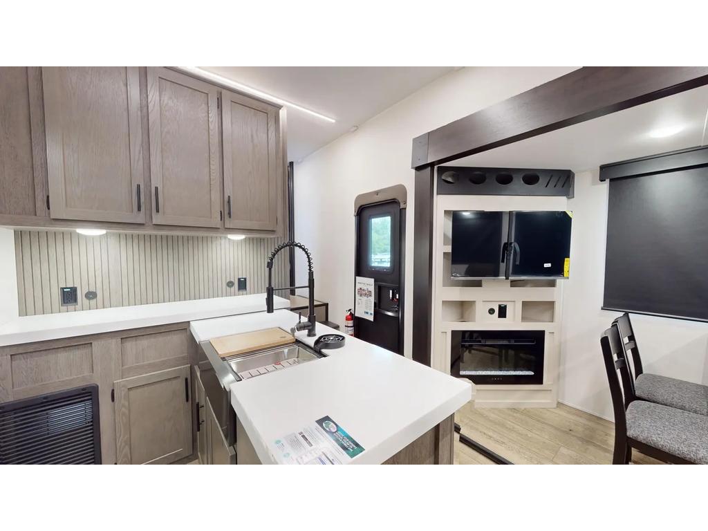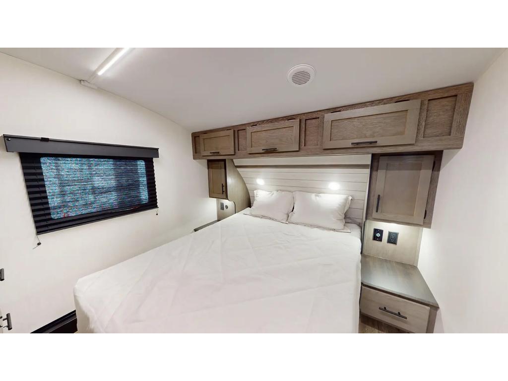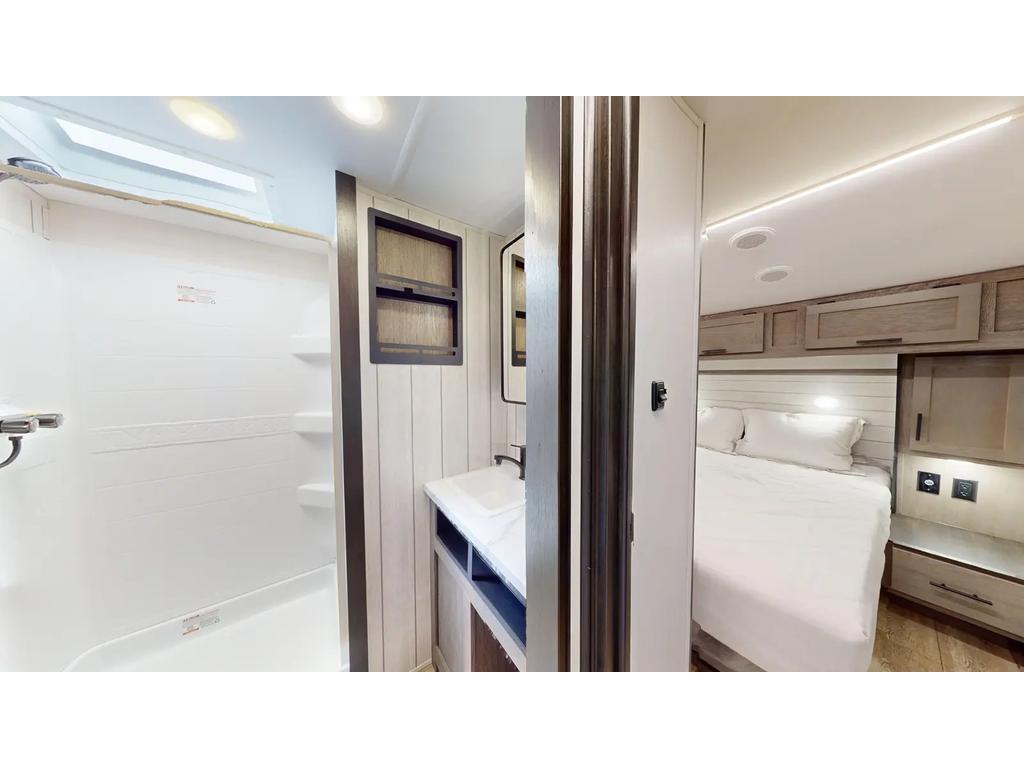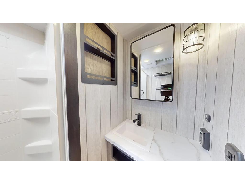 Les caractéristiques extérieures comprennent un climatiseur de 15 000 BTU, une préparation pour un système de caméra de sécurité et une mise à niveau automatique à une touche