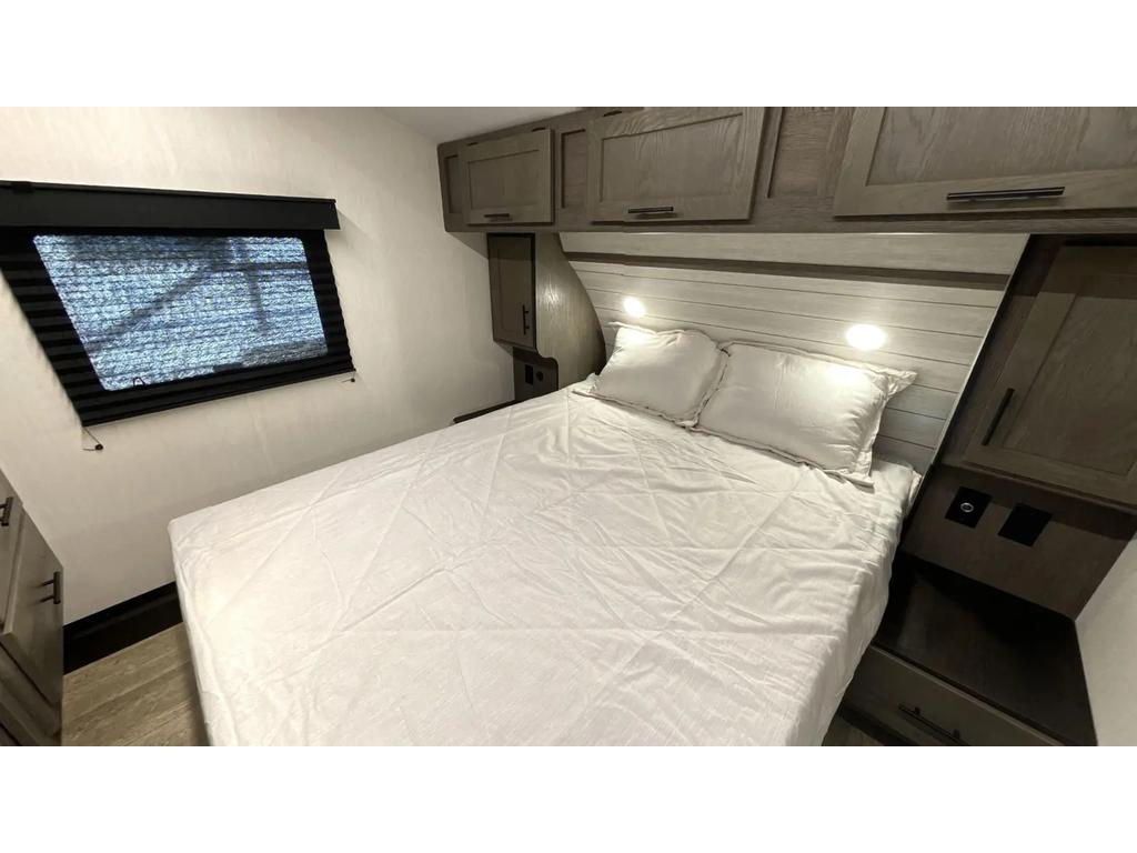 Parmi les raffinements extérieurs, citons un auvent extérieur surdimensionné de 20', un climatiseur de 15 000 BTU, un espace de rangement,