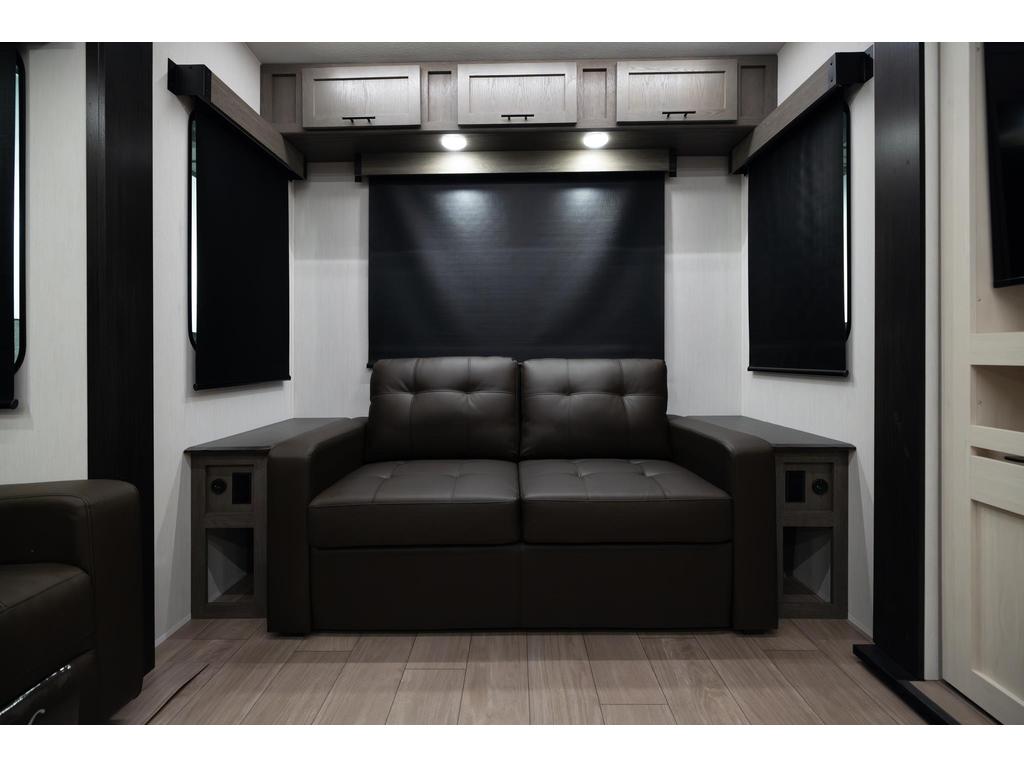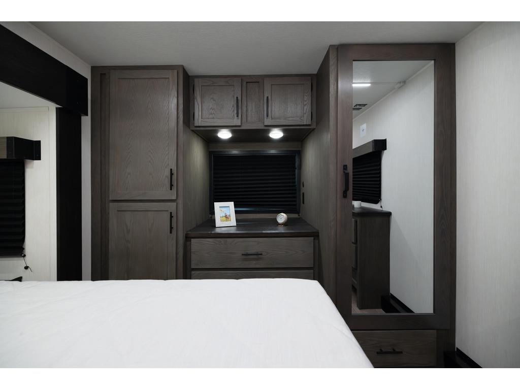 À lavant, on retrouve un lit king, une salle de bain complète, une banquette « sun bench » et beaucoup despace de rangement dans la garde-robe.