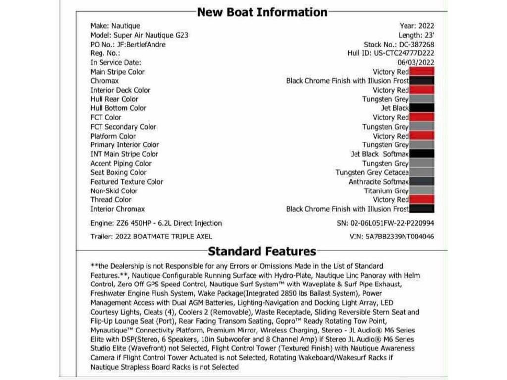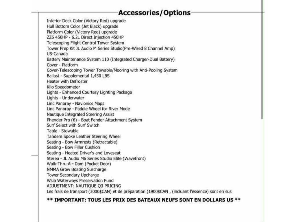 2022 SUPER AIR NAUTIQUE MODELE G-23 L'EMBARCATIONS HAUTE DE GAME DE WAKESURF ET SPORT NAUTIQUE LE MEC ULTRA DU BATEAU DE PLAISANCE SPORTIVE SEULEMENT 104.9 HEURES D'UTILISATION BALANCE DE GARANTIE DISPONIBLE DU MANUFACTURIER JUSQU'EN 2027 ULTRA LUXUEUX, 1 SEUL PROPRIO. JAMAIS RESTER A L'EAU ET TOUJOURS ENTREPOSER DANS UN GARAGE INTERIEUR & ENTRETENUE MINITIEUSEMENT MOTEUR V8 DE MARQUE PCM MARINE ZZ6 A INJECTION DIRECTE ET QUI DEVELOPPE 450 H.P SYSTEME DE CONTROLE MYNAUTIQUE AVEC ECRAN COULEUR DE GRAND FORMAT POUR INDICATEUR DE VITESSE + RADIO + GPS + CONTROLEUR DE BALLAST + ECLAIRAGE + CHAUFFAGE ET +++ SYSTEME CONFIGURABLE HYDRO-PLATE RUNNING SURFACE TOUR QUI S'ABAISSE ELECTRIQUE + TOIT BIMINI GRAND FORMAT DE COUELUR ASSORTIE CAMERA COULEUR MONTER DIRECTEMENT SUR LA TOUR + SYSTEME DE BASE ROTATIVE PRET POUR CAMERA GOPRO REMORQUE DE LUXE 2022 DE MARQUE BOAT MATE DE COULEUR ASSORTIE A TRIPLE ESSIEUX AVEC FREINS A DISQUE SUR CHAQUE ESSUIE + ENSEMBLE DE MAGS DE MARQUE MOTO METAL NOIR + ROUE DE SECOUR + ESCABLER D'EMBARQUEMENT AVANT AVEC TAPIS SEA-DECK + TAPIS SEA-DECK SUR AILE ET APPUIE PEDS + SYSTEME DE LUMIERE AUX DEL QUI PEUVENT ETRE CHANGER DE COULEUR VIA L'APPLICATION ET BEAUCOUP PLUS! SUR RENDEZ VOUS SEULEMENT ( 450-413-1515) TOUTES NOS UNITÉES SONT MINUTIEUSEMENT CHOISIS,INSPECTÉES ET GARANTIES FINANCEMENT DESJARDINS,NATIONALE OU SCOTIA POUR CONFIRMER LA DISPONIBILITÉ OU INFO SVP COMMUNIQUER AVEC LE DÉPARTEMENT DES VENTES AU 450-413-1515 OU TEXTO AU 514-213-3163 FRAIS 99$ RDPRM +119$+TX PERMIS D'EMBARCATION