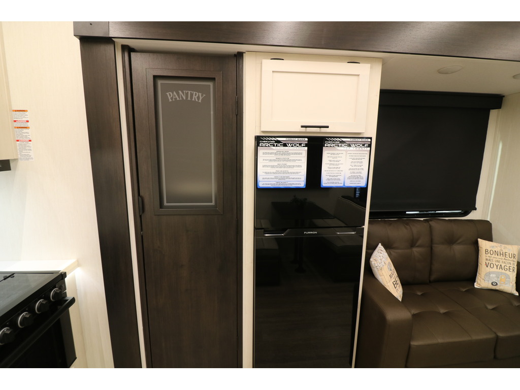 vendu ! SUPER SPÉCIAL EN FIN DE SEMAINE !! Arctic Wolf 23MLE 2025. Roulotte à sellette parfaite pour un couple! Elle pèse 7400lbs. La cuisine qui se situe à l'arrière de la roulotte est entièrement équipée. Elle est munie d'un grand réfrigérateur, d'un four, d'un micro-ondes, d'un grand évier en acier inoxydable, ainsi qu'un grand garde-manger. Dans l'air ouverte, vous serez enchanté par la télévision et le foyer qui ajoute du confort à cette roulotte. Dans l'extension vous retrouverez un sofa qui se transforme en lit pout les invités. La cuisine est munie d'une belle banquette qui peut accueillir 4 personnes. À l'avant de l'unité, se trouve la chambre des maîtres. Elle est équipée d'un matelas queen et d'un garde-robe en face du lit. Dans la salle de bain, vous avez une grande douche vitrée avec pommeau de qualité supérieur, une vanité ainsi qu'une pharmacie. Vous pourrez passer du bon temps à l'extérieur grâce à l'auvent électrique et la cuisinette. Dans celle-ci, il y a une machine à glace, un petit réfrigérateur, ainsi qu'un rond de poêle. Celle roulotte est équipé d'un système de nivellement automatique, de marches solides et d'un très grand espace de rangement. Financement disponible sur place LARRY CARAVANES 530 RTE PRESIDENT KENNEDY LEVIS 418-838-0333 *Photos à titre indicatif*