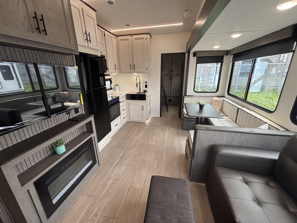 Arctic Wolf 287BH 2026 !! Roulotte à sellette idéale pour la famille. Elle est complètement équipée avec une finition luxueuse et un poids de 8300 lbs. Elle a une extension double avec sofa lit et une banquette avec de grands tiroirs pour le rangement. La cuisine a beaucoup de commodités telles qu'un grand évier, une cuisinière avec dessus vitré et un grand réfrigérateur. Les lits superposés sont double/double. Dans la chambre des maîtres, vous disposez de beaucoup d'espace de circulation ainsi que du rangement. De plus, la roulotte possède une salle de bain complète avec bain douche et du rangement supplémentaire. Cette roulotte a une très belle finition intérieure avec dosseret de cuisine et lumières led. Aussi, elle est parfaite pour passer du bon temps à l'extérieur grâce à l'auvent électrique et au rangement pour le petit réfrigérateur extérieur. De plus, elle est munie d'un système auto nivelant et des marches ultra-robustes pour une meilleure stabilité. Financement facile sur place. **Photos à titre indicatif**