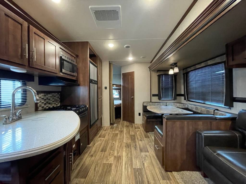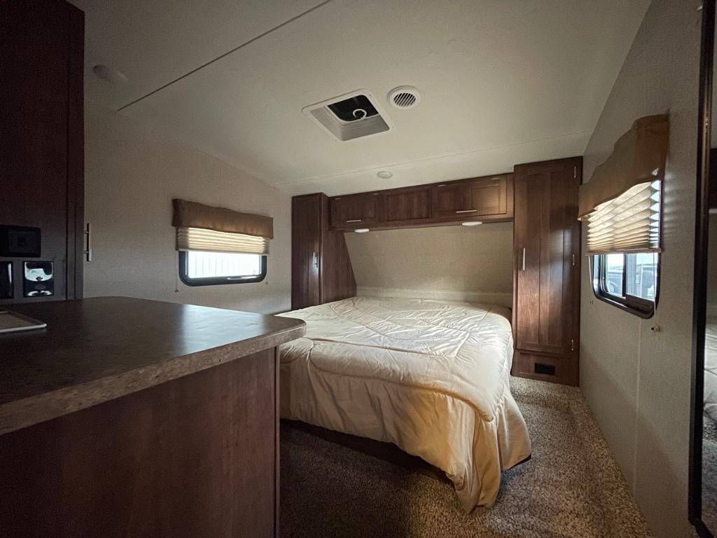 VOLANTE 270BH 2018 Fifth Wheel Volante 270BH 2018 Mesure 30'5'' et pèse 7 704lbs. Elle peut accueillir 8 personnes pour le coucher puisqu'elle possède des lits superposés, un canapé-lit, une dinette en U ainsi qu'un lit Queen dans la chambre des maîtres. Dispose d'un extension au niveau de l'aire commune. cuisine et salle de bain complète. Centre du VR : Votre expert en véhicules récréatifs au Québec Découvrez le plus vaste inventaire de VR neufs et d'occasion au meilleur prix. Que vous cherchiez une roulotte, une caravane à sellette (fifth wheel), une caravane-portée, un motorisé ou une remorque, notre équipe vous propose les plus grandes marques : Roulottes et Fifth Wheels : Rockwood, Flagstaff, Cougar, Springdale, Sunset Trail, Chaparral, Columbus, Impression, Kodiak, Coleman, E-Pro, Cruiser RV. Motorisés (Classe A, B, C) : Axis, Hurricane, Fleetwood, Four Winds, Coachmen Cross Trail, Prism, Echelon, Outlaw, Beyond, Nova. Remorques et Équipements : NN, Apogée, Armorteck et génératrices Ducar ou Cummins. Bien plus que de la vente : Un service complet Département de pièces et boutique : Un inventaire massif de pièces de remplacement et d'accessoires de camping pour améliorer votre confort. Service et réparation : Un centre de service spécialisé pour l'entretien et la réparation de vos unités, assuré par des techniciens experts. Financement : Profitez de nos solutions de financement avantageuses directement sur place. Un modèle vous intéresse ou vous avez besoin d'un entretien ? Contactez-nous pour une demande d'information ou passez nous voir en succursale pour une visite ! Note : Les photos et options peuvent différer de la réalité.