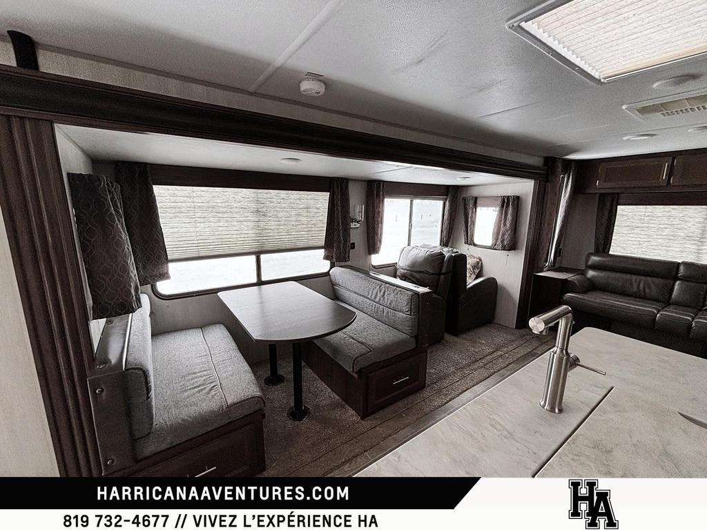 Roulotte Cherokee 274WK de 2019, bien entretenue, spacieuse et confortable parfaite pour les aventures en famille ou les escapades prolongées! Ce modèle offre un plan daménagement intelligent avec plusieurs espaces de vie, une grande chambre à coucher principale, un salon convivial et une cuisine entièrement équipée.