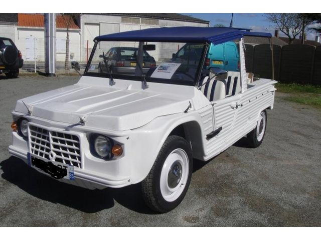 Citroen Mehari E en très bon état .Aucun problème mécanique ni électronique,jamais accidenté,carrosserie incapable, 2 portes,4 places ,100.000km,manuelle,essence. Mise en circulation : 04 / 10 / 1974 Couleur int. : simili blanc Couleur extérieure : blanc laque Bâche : complète en bon état. Châssis : en bon état. Sièges : en bon état. Freins neufs( disques et plaquettes), pneus neufs, huiles changées, bougies neuves. Dans son état d'origine, jamais restaurée mais bien entretenue. Roule régulièrement les week-ends et dort à toujours l'abri dans mon garage. Entretien régulier par garage Citroën Voiture en bon état Non fumeur, aucun frais à prévoir Pas de changement de courroie de distribution a faire échappement complet neuf,vendu avec bâche CONTRÔLE OK