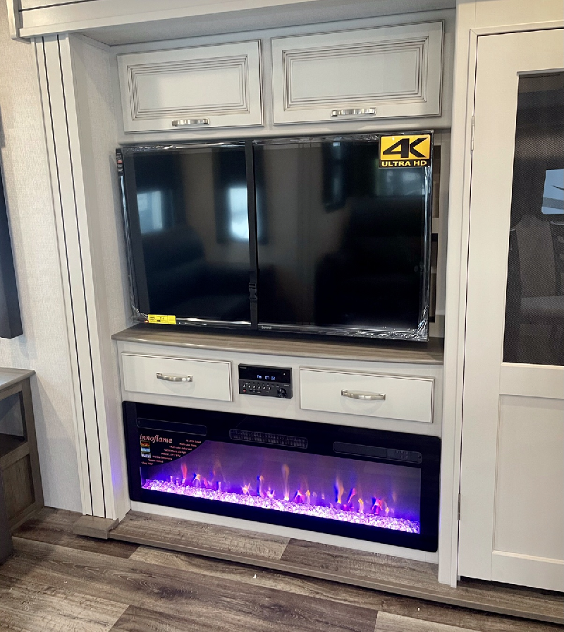 3 extensions, 2 auvents électriques, 3 auvents d?extension, panneau solaire 200W convertisseur onduleur, foyer électrique 5500 btu avec thermostat, garantie prolongée de 7 ans, vitres en verre teintées, dessous polypropylène, chauffé fermé, mise à niveau automatique, stores à rouleau de nuit, grande douche avec porte vitrée et puit de lumière,lit queen matelas de grande qualité, fauteuils basculants, chauffés, massages intégrés. Et bien plus??, une visite s?impose, occasion unique!!!! Pour information et visite sur rendez-vous au 514-518-1750