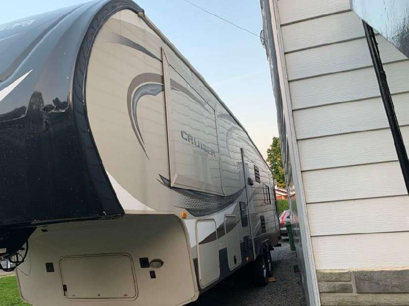 FIFTH WHEEL 2016 34 PIED CRUISER 305 RS 3 SLIDE OUT , LUXUEUSE PESE 9800 LBS TOIT CATHEDRALE AVEC FAN 2 CAUSEUSES EN CUIR BLANC + DIVAN LIT BEAU GRAND SALON SLIDE OUT FACE A FACE BELLE ILOT DE CUISINE FOYER , TV , A/C , BELLE GRANDE DOUCHE EN VERRE CHAMBRE AVEC GRANDE PANDRIE ** FINANCEMENT DISPONIBLE ** * VENTE PAR UNE COMPAGNIE * LA ROULOTTE EST A BEAUPRÉ APPELEZ MOI EN TOUT TEMPS AU 418-932-6595