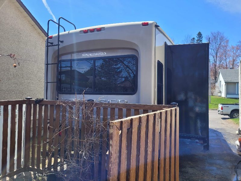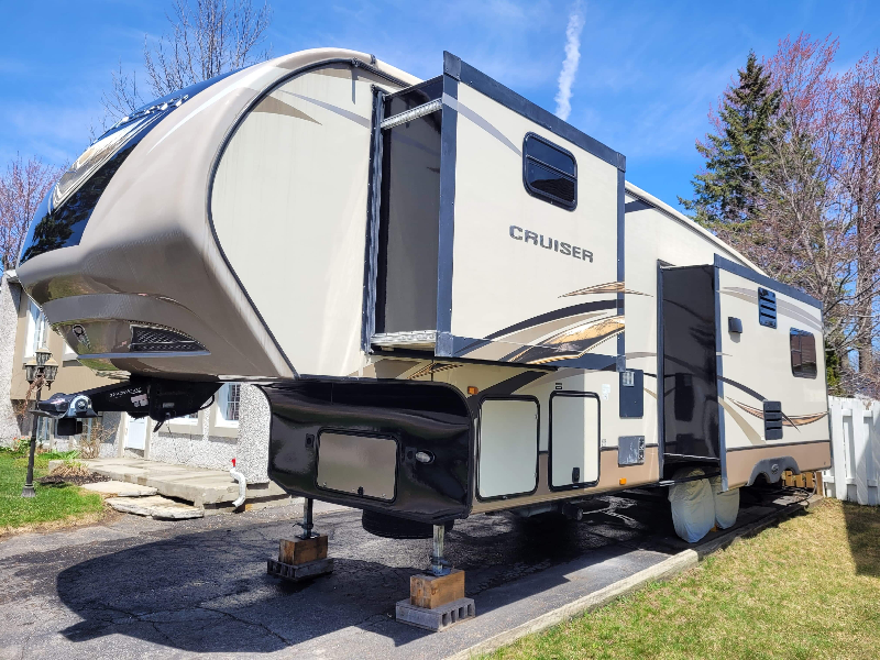 Caravane à sellette à vendre (fifthwheel) Cruiser 2015, 305RS, 33 pieds, 3 extensions, 2e cuisine extérieure, air climatisée, chauffage, foyer, isolation supérieure, lit Queen, matelas de qualité supérieure, divan-lit, TV par satellite automatisé, auvent électrique, très bien entretenu, entretenu et inspecté chaque année (factures disponibles), vient avec housse pour l?air climatisé, housses pour les pneus, barrière pour l?attache, grand tapis pour l?extérieur. On peut même aller vous le porter sur votre terrain dans un rayon de 40 Km. Peut être vendu avec Ford pick-up 2013, 91000km, prix à discuter.