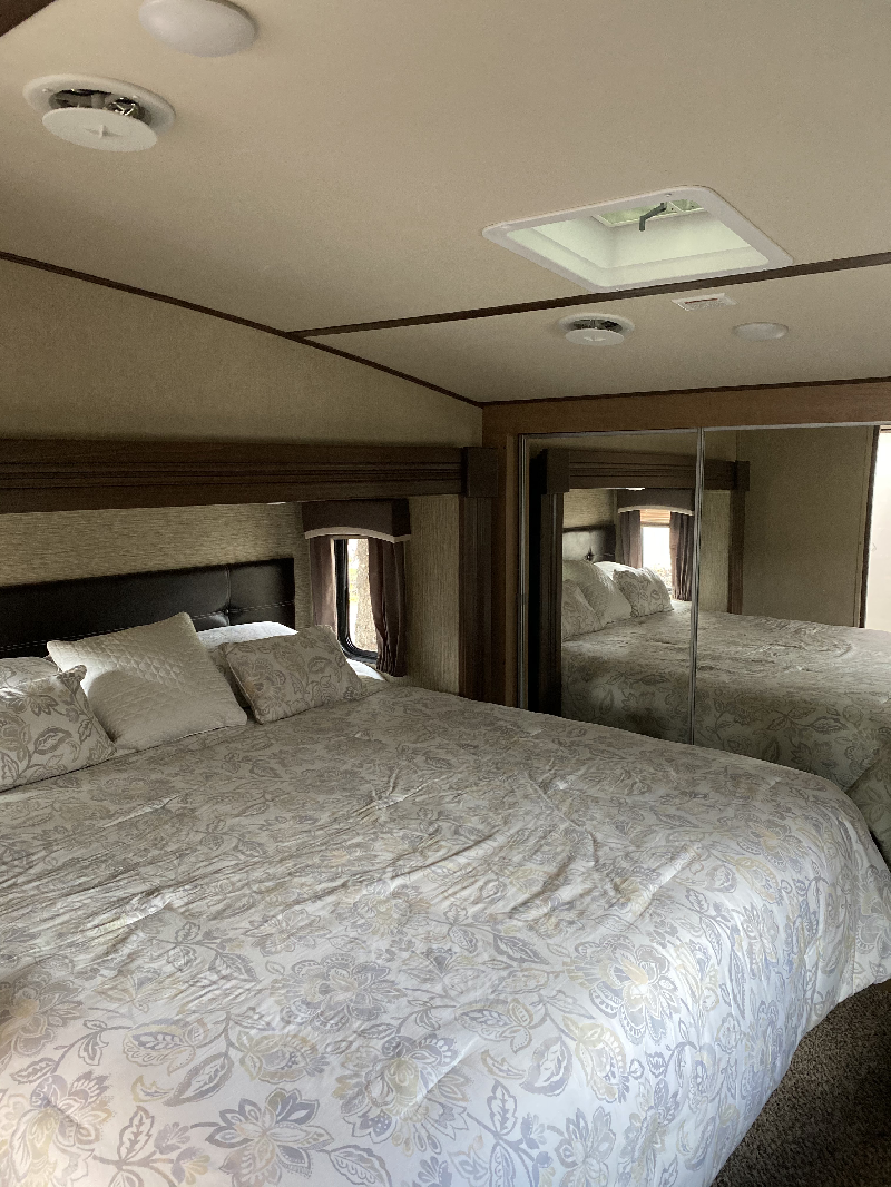 Fifth wheel acheté neuve en 2017, aucun voyage effectué, seulement pour se rendre au camping et de retour à la maison. Cuisine ultra moderne, immense frigo, télévision HD, foyer , sofa lit de luxe, grand lit king, douche très grande, air climatisé, système auto niveleur pour les pattes, 3 slide out, immense coffre de rangement, balayeuse centrale, isolation plus, 2 propanes de 30 livres, etc?.. Idéal pour les snowbirds qui se préparent pour aller passer hiver au chaud. Soyez le premier , pour en profiter.