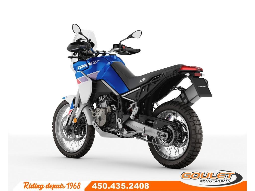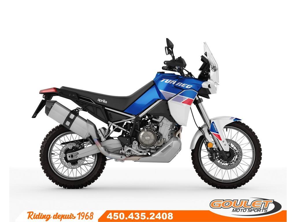 APRILIA TUAREG 660 - INDACO TAGELMUST \*\*\* Liquidation Finale - Rabais de 2396$ \*\*\* La Tuareg 660 trace une nouvelle voie, offrant des performances de référence dans toutes les conditions et un équipement d'aventure authentique. Avec un poids à sec de 187 kg seulement, la Tuareg 660 constitue une référence dans le secteur en termes de légèreté. - Le moteur bicylindre parallèle délivre désormais une puissance maximale de 80 ch, un couple de pointe de 70 Nm et une courbe de bas/moyens régimes nettement améliorée. - Quatre modes de conduite, dont deux personnalisables (un dédié à la conduite tout-terrain) - Système APRC, Contrôle de traction ajustable, Frein moteur et mapping ajustable. Cruise Control. - Tableau de bord couleur TFT 5pc, bluetooth ready. - L'ABS peut être désactivé sur les deux roues ou seulement à l'arrière. - Une fourche de 43 mm et un mono-amortisseur à tringlerie progressive, tous deux dotés d'un long débattement de 240 mm - Roue avant de 90/90-21pc, roue arrière 150/70-18 Cette unité est chez Goulet Moto Sports de Ste-Thérèse. Téléphonez au 450.435.2408 FRAIS DE TRANSPORT ET PRÉPARATION INCLUS DANS LE PRIX Possibilité de financement avec plusieurs institutions financières. 2ième chance au crédit disponible. Goulet Moto Sports est votre concessionnaire moto depuis 1968. Fier représentant officiel des marques HONDA, APRILIA, MOTO GUZZI, VESPA, PIAGGIO, KTM, NIU, SURRON et URAL pour le grand Montréal. Nous avons un énorme choix de moto usagés inspectées par nos professionnels. 2 adresses pour vous servir, soit à Sainte-Thérèse (450.435.2408) et Saint-Jérôme (450.431.6622). Goulet Moto Sports ne peut être tenu responsable d'une omission, d'un délai ou d'une erreur de transcription de l'information. Le prix affiché reflète la condition de l'unité. Pour différentes raisons les prix peuvent différer de ceux indiqués en ligne. Les données sont affichées à titre indicatif seulement et ne peuvent être considérées comme une information contractuelle. Nous vous encourageons vivement à nous consulter pour plus de détails avant de vous déplacer. Des frais tels que taxes, immatriculation, administrations ou autres peuvent s'appliquer. Se compare à Yamaha Tenere T7, KTM 890 Adventure, BMW F 850GS ou la Triumph Tiger. Essence, Transmission: Manuelle, 6 vitesses, Système de refroidissement: Refroidi au liquide, 2 cylindres, 80.0 CV, 660.0 CC, Garantie: 2 ans ---------------------- APRILIA TUAREG 660 - INDACO TAGELMUST \*\*\* SHIPPING AND PREPARATION INCLUDED IN THE PRICE \*\*\* The Tuareg 660 blazes a new trail, delivering benchmark performance in all conditions and authentic adventure gear. With a dry weight of just 187 kg, the Tuareg 660 sets an industry benchmark in terms of lightness. - The parallel twin engine now delivers a maximum power of 80 hp, a peak torque of 70 Nm and a significantly improved low/mid-range curve. - Four driving modes, two of which are customizable (one dedicated to off-road driving) - APRC system, adjustable traction control, engine brake and adjustable mapping. Cruise Control. - 5pc TFT color dashboard, bluetooth ready. - ABS can be deactivated on both wheels or only at the rear. - 43mm fork and progressive linkage monoshock, both with long 240mm travel - 90/90-21pc front wheel, 150/70-18 rear wheel This unit is at Goulet Moto Sports in Ste-Thérèse. Call 450.435.2408 Possibility of financing with several financial institutions. 2nd chance credit available. Goulet Moto Sports has been your motorcycle dealer since 1968. Proud official representative of the HONDA, APRILIA, MOTO GUZZI, VESPA, PIAGGIO, KTM, NIU, SURRON and URAL brands for greater Montreal. We have a huge selection of used motorcycles inspected by our professionals. 2 addresses to serve you, in Sainte-Thérèse (450.435.2408) and Saint-Jérôme (450.431.6622). Goulet Moto Sports cannot be held responsible for any omission, delay or transcription error in the information. The displayed price reflects the condition of the unit. For various reasons the prices may differ from those indicated online. The data is displayed for information purposes only and cannot be considered as contractual information. We strongly encourage you to consult us for more details before you travel. Fees such as taxes, registration, administration or others may apply. Compares to Yamaha Tenere T7, KTM 890 Adventure, BMW F 850GS or the Triumph Tiger. Gasoline, Transmission: Manual, 6 speeds, Cooling System: Liquid cooling, 2 cylinders, 80.0 HP, 660.0 CC, Warranty: 2 ans
