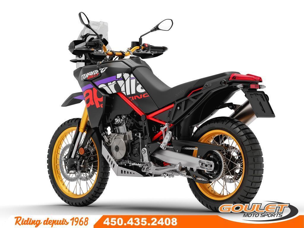 APRILIA TUAREG 660 RALLY 2026 \*\*\* FRAIS DE TRANSPORT ET PRÉPARATION INCLUS DANS LE PRIX \*\*\* La Tuareg 660 trace une nouvelle voie, offrant des performances de référence dans toutes les conditions et un équipement d'aventure authentique. Avec un poids à sec de 187 kg seulement, la Tuareg 660 Rally constitue une référence dans le secteur en termes de légèreté. - Nouveau moteur amélioré : Bicylindre de 659 cm³ développant 80 chevaux et 70 Nm de couple, offrant des performances accrues. - Suspension haut de gamme amélioré : Fourche inversée Kayaba de 43 mm et mono-amortisseur arrière à tringlerie progressive avec débattement de 240 mm. - Ailes avant et carénage optimisé : Nouvelle aile avant intégrée, améliorant l'aérodynamisme et la stabilité à haute vitesse, tout en offrant une protection accrue contre les intempéries et la boue. - Échappement SC Project : Système d'échappement haute performance SC Project titane pour une sonorité distinctive et un gain en performances. - Modes de conduite avancés : Quatre modes de conduite, dont deux personnalisables, adaptés pour une conduite optimale sur route et tout-terrain - Système APRC de dernière génération : Contrôle de traction ajustable, contrôle du frein moteur et cartographies moteur optimisées pour un contrôle précis dans toutes les conditions. - ABS déconnectable : Permet de désactiver l'ABS sur les deux roues ou uniquement à l'arrière, facilitant la conduite sur des terrains difficiles. - Écran TFT couleur de 5 pouces : Affichage clair et précis, avec connectivité Bluetooth pour une navigation en temps réel et un suivi des informations essentielles. - Design robuste pour l'aventure : Nouveau carénage renforcé et protections supplémentaires, offrant une meilleure résistance aux conditions extrêmes. - Nouvelle roues: Roues plus robuste en ergal avec chambre à air. Cette unité est chez Goulet Moto Sports de Ste-Thérèse. Téléphonez au 450.435.2408 Possibilité de financement avec plusieurs institutions financières. 2ième chance au crédit disponible. Taux d'intérêt Aprilia spéciaux disponible sur PDSF Goulet Moto Sports est votre concessionnaire moto depuis 1968. Fier représentant officiel des marques HONDA, APRILIA, MOTO GUZZI, VESPA, PIAGGIO, KTM, NIU, SURRON et URAL pour le grand Montréal. Nous avons un énorme choix de moto usagés inspectées par nos professionnels. 2 adresses pour vous servir, soit à Sainte-Thérèse (450.435.2408) et Saint-Jérôme (450.431.6622). Goulet Moto Sports ne peut être tenu responsable d'une omission, d'un délai ou d'une erreur de transcription de l'information. Le prix affiché reflète la condition de l'unité. Pour différentes raisons les prix peuvent différer de ceux indiqués en ligne. Les données sont affichées à titre indicatif seulement et ne peuvent être considérées comme une information contractuelle. Nous vous encourageons vivement à nous consulter pour plus de détails avant de vous déplacer. Des frais tels que taxes, immatriculation, administrations ou autres peuvent s'appliquer. Se compare à Yamaha Tenere T7, KTM 890 Adventure, BMW F 850GS ou la Triumph Tiger. Essence, Transmission: Manuelle, 6 vitesses, Système de refroidissement: Refroidi au liquide, 2 cylindres, 80.0 CV, 660.0 CC, Garantie: 2 ans ---------------------- APRILIA TUAREG 660 RALLY 2026 TRANSPORT AND PREPARATION INCLUDED IN THE PRICE The Aprilia Tuareg 660 Rally paves the way, offering benchmark performance in all conditions and authentic adventure equipment. With a dry weight of only 187 kg, the Tuareg 660 Rally sets a standard in the sector in terms of lightweight design. - New and improved engine: 659cc twin-cylinder developing 80 horsepower and 70 Nm of torque, delivering increased performance. - Upgraded premium suspension: 43mm Kayaba inverted fork and progressive linkage rear monoshock with 240mm of travel. - Optimized front fenders and fairing: New integrated front fender, improving aerodynamics and high-speed stability, while providing increased protection against weather and mud. - SC Project exhaust: High-performance SC Project titanium exhaust system for a distinctive sound and increased performance. - Advanced riding modes: Four riding modes, two of which are customizable, tailored for optimal on- and off-road riding. - Latest-generation APRC system: Adjustable traction control, engine brake control, and optimized engine maps for precise control in all conditions. Switchable ABS: Allows you to deactivate the ABS on both wheels or only the rear, making it easier to ride on difficult terrain. - 5-inch color TFT display: Clear and precise display, with Bluetooth connectivity for real-time navigation and tracking of essential information. - Robust design for adventure: New reinforced fairing and additional protections, offering better resistance to extreme conditions. - - More robust Ergal wheels with inner tubes. This unit is available at Goulet Moto Sports in Ste-Thérèse. Call us at 450-435-2408. Financing available through several financial institutions. Second chance credit available. Special Aprilia rates available on MSRP. Goulet Moto Sports has been your trusted motorcycle dealer since 1968. Official representative of HONDA, APRILIA, MOTO GUZZI, VESPA, PIAGGIO, KTM, NIU, SURRON, and URAL brands in the Greater Montreal area. We offer a wide selection of inspected used motorcycles. Two locations to serve you: Sainte-Thérèse (450-435-2408) and Saint-Jérôme (450-431-6622). Goulet Moto Sports is not responsible for any omissions, delays, or transcription errors of the information. The displayed price reflects the condition of the unit. Prices may vary from those shown online for various reasons. The data is provided for informational purposes only and cannot be considered contractual information. We strongly encourage you to consult us for more details before coming in. Fees such as taxes, registration, administration, or oth