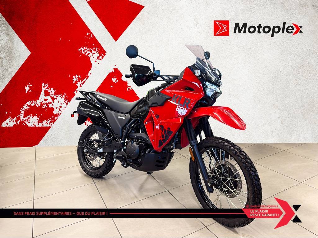 KLR650 La moto KLR650 est construite pour donner à votre passion le pouvoir de s'évader et d'explorer. Sa double fonction lui permet de rouler sur route et hors route, et sa réputation de fiabilité durable vous aide à vous concentrer sur l'aventure qui vous attend. Pendant des décennies, la légendaire plateforme de la KLR650 a inspiré d'innombrables histoires dans le monde entier, et l'esprit de créer de nouveaux souvenirs continue d'être présent aujourd'hui. La marque japonaise Kawasaki, largement connue pour ses motos et motomarines à performance inégalée, offre aussi des VTT et côtes-à-côtes tout aussi intéressants. motos et vtts non disponible a la succursale de St-Eustache GARANTIE PROLONGÉE jusqu'à 4 ans disponible et plan d’entretien Financement approuvé — 1re, 2e et 3e chance au crédit! Testez-nous et trouvez la meilleure solution, au meilleur taux. Votre incontournable du financement ! PLEASE DON'T HESITATE TO CONTACT US, WE SPEAK ENGLISH AS WELL ! Nous prenons tout véhicule d’échange Prix Garanti. AUCUN FRAIS CACHÉS, prix affiché valide sur financement ou paiement comptant. *(taxe en sus) We speak English contact us. LIVRAISON PARTOUT AU Québec Mentions légales au financement, consultez notre site Internet. GARANTIE PROLONGÉE jusqu'à 4 ans disponible et plan d’entretien disponible uniquement chez groupe motoplex