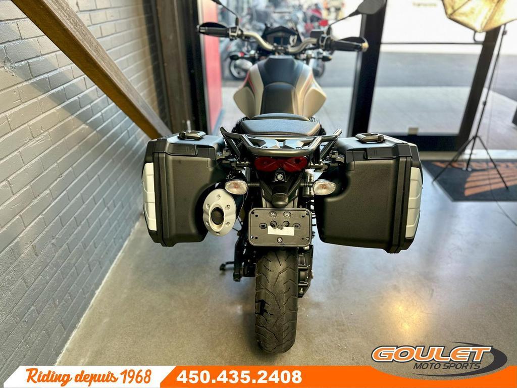 MOTO GUZZI V85TT TRAVEL \*\*\* Édition Travel Bien équipé, moto super propre. Parfait pour l'aventure - PRIX RÉDUIT À 11995$ \*\*\* Le Moto Guzzi V85 TT Travel 2023 est une moto adventure-tourer polyvalente qui marie parfaitement le style rétro unique de Moto Guzzi avec la technologie moderne. Conçue pour les grands voyages comme pour les escapades hors des sentiers battus, elle est animée par un moteur bicylindre en V transversal de 853 cc, robuste et fiable, offrant un couple généreux et une expérience de conduite authentique. ? Édition Travel équipé de valises latérales, parebrise haut, center stand, poignées chauffantes. - Moteur bicylindre en V transversal de 853 cc, refroidi par air et huile, offrant puissance et couple idéal pour le tourisme - Cadre tubulaire en acier pour une grande rigidité et une stabilité optimale - Suspension à long débattement pour affronter routes sinueuses et chemins de gravier - Freins Brembo avec ABS pour une sécurité maximale dans toutes les conditions - Modes de conduite électroniques (Route, Pluie, Off-road) pour s'adapter à tous les terrains - Écran TFT couleur avec connectivité pour accéder aux informations de voyage et à la navigation - Style rétro-aventure unique avec valises et accessoires disponibles pour le voyage au long cours ?? Disponible chez Goulet Moto Sports Ste-Thérèse. Téléphonez au 450.435.2408 Financement disponible via plusieurs institutions financières. 2e chance au crédit acceptée. Goulet Moto Sports est votre concessionnaire moto depuis 1968. Fier représentant officiel de HONDA, APRILIA, MOTO GUZZI, VESPA, PIAGGIO, KTM, NIU, SURRON et URAL pour la grande région de Montréal. Nous proposons aussi un large inventaire de motos d'occasion, toutes soigneusement inspectées. Deux succursales pour mieux vous servir : Sainte-Thérèse (450.435.2408) et Saint-Jérôme (450.431.6622). Goulet Moto Sports ne peut être tenu responsable des omissions, retards ou erreurs de transcription. Le prix affiché reflète l'état du véhicule. Pour diverses raisons, le prix peut différer de celui indiqué en ligne. Les données fournies sont à titre indicatif seulement et ne constituent pas une information contractuelle. Nous vous encourageons fortement à nous contacter avant votre visite. Des frais additionnels tels que taxes, immatriculation, administration ou autres peuvent s'appliquer. ?? Modèles comparables : BMW F850 GS, Triumph Tiger 900, Yamaha Ténéré 700, Honda Africa Twin, Honda Transalp, KTM 790, Ducati DesertX. ---------------------- MOTO GUZZI V85TT TRAVEL \*\*\* Travel Edition: Well-equipped, super-clean bike. Perfect for adventures. \*\*\* The 2023 Moto Guzzi V85 TT Travel is a versatile adventure-tourer that perfectly combines Moto Guzzi's unique retro style with modern technology. Designed for both long-distance travel and off-road adventures, it's powered by a robust and reliable 853cc transverse V-twin engine, delivering generous torque and an authentic riding experience. ? Travel Edition equipped with side cases, high windscreen, center stand, and heated grips. - 853 cc air- and oil-cooled transverse V-twin engine delivers power and torque ideal for touring. - Tubular steel frame for high rigidity and optimal stability. - Long-travel suspension to tackle winding roads and gravel paths. - Brembo brakes with ABS for maximum safety in all conditions. - Electronic riding modes (Road, Rain, Off-road) to adapt to any terrain. - Color TFT display with connectivity to access trip information and navigation. - Unique retro-adventure styling with luggage and accessories available for long-distance travel. ?? Available at Goulet Moto Sports Ste-Thérèse. Call 450.435.2408. Financing available through several financial institutions. Second chance credit accepted. Goulet Moto Sports has been your motorcycle dealership since 1968. We are a proud official representative of HONDA, APRILIA, MOTO GUZZI, VESPA, PIAGGIO, KTM, NIU, SURRON, and URAL for the greater Montreal area. We also offer a large inventory of carefully inspected used motorcycles. We have two locations to better serve you: Sainte-Thérèse (450.435.2408) and Saint-Jérôme (450.431.6622). Goulet Moto Sports cannot be held responsible for omissions, delays, or transcription errors. The price displayed reflects the condition of the vehicle. For various reasons, the price may differ from the one indicated online. The information provided is for informational purposes only and does not constitute contractual information. We strongly encourage you to contact us before your visit. Additional fees such as taxes, registration, administration, or other charges may apply. ?? Comparable models: BMW F850 GS, Triumph Tiger 900, Yamaha Ténéré 700, Honda Africa Twin, Honda Transalp, KTM 790, Ducati DesertX.