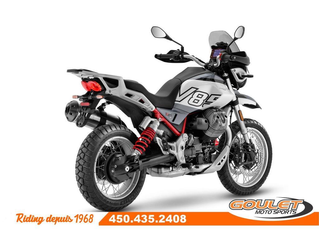 MOTO GUZZI V85TT - GRIGIO TAMBORA \*\*\* Frais de transport et préparation inclus dans le prix \*\*\* Le Moto Guzzi V85 Strada 2025 est équipé d'un moteur V-twin de 850cc avec de nouvelles têtes de moteur améliorées, offrant une meilleure gestion thermique, moins de vibrations et des performances optimisées. Sa suspension avant inversée de 41 mm, son système de freinage avec disques de 320 mm et son contrôle de traction ajustable assurent une conduite stable et sécurisée sur tous les terrains. Le tableau de bord numérique TFT complète l'ensemble pour une expérience de conduite moderne et connectée. - Nouveau moteur V2 Transversal désormais avec calage variable des soupapes produisant maintenant 80hp et plus de couple (torque). - 5 Modes de conduite (Road, Rain, Off-Road, Sport et User) - Contrôle de tractionajustable MGCT - Régulateur de vitesses (Cruise Control) - Nouveau écran couleur TFT de 5.0 pc - Nouveau parebrise ajustable 5 positions - Frein ABS avec mode ajustable - Arbre d'entrainement (Driveshaft) Cette unité est chez Goulet Moto Sports de Ste-Thérèse. Téléphonez au 450.435.2408 Possibilité de financement avec plusieurs institutions financières. 2ième chance au crédit disponible. Taux de financement spécial uniquement disponible sur prix de détail (voir condition sur Moto Guzzi Canada) Goulet Moto Sports est votre concessionnaire moto depuis 1968. Fier représentant officiel des marques HONDA, APRILIA, MOTO GUZZI, VESPA, PIAGGIO, KTM, NIU, SURRON et URAL pour le grand Montréal. Nous avons un énorme choix de moto usagés inspectées par nos professionnels. 2 adresses pour vous servir, soit à Sainte-Thérèse (450.435.2408) et Saint-Jérôme (450.431.6622). Goulet Moto Sports ne peut être tenu responsable d'une omission, d'un délai ou d'une erreur de transcription de l'information. Le prix affiché reflète la condition de l'unité. Pour différentes raisons les prix peuvent différer de ceux indiqués en ligne. Les données sont affichées à titre indicatif seulement et ne peuvent être considérées comme une information contractuelle. Nous vous encourageons vivement à nous consulter pour plus de détails avant de vous déplacer. Des frais tels que taxes, immatriculation, administrations ou autres peuvent s'appliquer. La Moto Guzzi V85TT se compare à une BMW F 850GS, une Triumph Tiger, une KTM 790 Adventure, Yamaha Ténéré 700 ou une Africa Twin Essence, Transmission: Manuelle, 6 vitesses, Système de refroidissement: Refroidi à l'air, 2 cylindres, 80.0 CV, 853.0 L, Garantie: 2 ans ---------------------- MOTO GUZZI V85TT - GRIGIO TAMBORA \*\*\* Shipping and handling included in the price \*\*\* The 2025 Moto Guzzi V85 Strada features an 850cc V-twin engine with new, improved engine heads, offering better thermal management, less vibration, and optimized performance. Its 41mm inverted front suspension, 320mm disc brakes, and adjustable traction control ensure a stable and secure ride on all terrains. The TFT digital instrument panel completes the package for a modern and connected riding experience. - New transverse V2 engine, now with variable valve timing, now producing 80hp and more torque. 5 Riding Modes (Road, Rain, Off-Road, Sport, and User) - Adjustable MGCT Traction Control - Cruise Control - New 5.0" TFT Color Display - New 5-Position Adjustable Windshield - ABS Brake with Adjustable Mode - Driveshaft This unit is at Goulet Moto Sports in Ste-Thérèse. Call 450.435.2408 Financing available with several financial institutions. Second chance credit available. Special financing rates only available on retail prices (see conditions on Moto Guzzi Canada). Goulet Moto Sports has been your motorcycle dealer since 1968. Proud official representative of the HONDA, APRILIA, MOTO GUZZI, VESPA, PIAGGIO, KTM, NIU, SURRON, and URAL brands for the greater Montreal area. We have a huge selection of used motorcycles inspected by our professionals. Two locations to serve you, in Sainte-Thérèse (450.435.2408) and Saint-Jérôme (450.431.6622). Goulet Moto Sports cannot be held responsible for any omission, delay, or transcription error. The price displayed reflects the condition of the unit. For various reasons, prices may differ from those indicated online. The data displayed is for informational purposes only and should not be considered contractual information. We strongly encourage you to contact us for more details before visiting. Fees such as taxes, registration, administration, and other charges may apply. The Moto Guzzi V85TT compares to a BMW F 850GS, a Triumph Tiger, a KTM 790 Adventure, a Yamaha Ténéré 700, or an Africa Twin. Gasoline, Transmission: Manual, 6 speeds, Cooling System: Air cooling, 2 cylinders, 80.0 HP, 853.0 L, Warranty: 2 ans