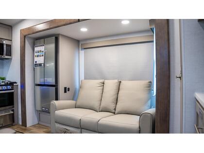 CARAVANE À SELLETTE ALLIANCE Avenue 23ML 2026 neuf à vendre La fifthwheel Alliance Avenue 23ML 2026 offre un design moderne et fonctionnel, pensé pour les couples et les voyageurs en solo. Sa cuisine arrière avec comptoir en L, grand garde-manger et réfrigérateur 12V de 10 pi³ maximise l’espace et le rangement. Le salon propose un sofa inclinable et une dinette flottante en option face au téléviseur 50''. La salle de bain centrale intègre une douche spacieuse 30'' x 36'', une penderie et une préparation laveuse/sécheuse. À l’avant, la chambre privée avec lit queen 60'' x 80'' et tables de nuit assure confort et praticité. Légère et facile à remorquer, la 23ML combine élégance et vie résidentielle dans un format compact. Les photos et visites virtuelles et fiches produits sont à titre indicatif et sans inscription. Pour vous assurer de l'exactitude de toutes les caractéristiques et fonctionnalités du produit, veuillez vous référer à l'un de nos conseillers. Veuillez vous référer à l'un de nos conseillers de vente qualifiés. Ils seront ravis de vous aider à trouver le produit qui répondra le mieux à vos besoins.