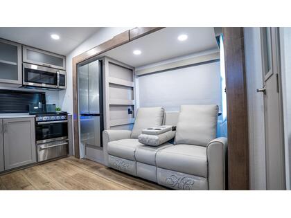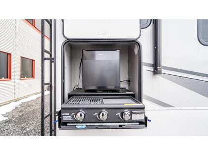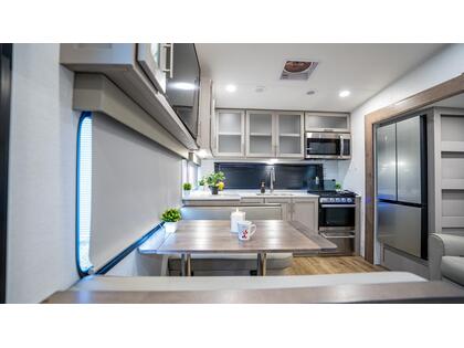 CARAVANE À SELLETTE ALLIANCE Avenue 23ML 2025 usagé à vendre Alliance RV Avenue 23ML La Alliance RV Avenue 23ML est une caravane à sellette conçue pour offrir confort et fonctionnalité aux voyageurs. Avec une longueur de 27 pieds 11 pouces et une hauteur de 12 pieds 2 pouces, elle propose un espace de vie optimisé pour vos aventures. Caractéristiques principales : Chambre privée à l'avant avec lit queen, tables de nuit doubles et rangements supérieurs. Sièges inclinables doubles et une grande dinette en forme de U pour des moments de détente. Téléviseur HD de 50 pouces monté sur support pivotant pour un visionnage optimal. Cuisine arrière bien équipée avec un grand garde-manger et un réfrigérateur de 10 pieds cubes fonctionnant en 12V. Salle de bain latérale avec douche de 30'' x 36'', lavabo et rangement pour le linge. Préparation pour lave-linge et sèche-linge, idéale pour les longs séjours. Construction et design : Construction ''Wide-Body'' de 101 pouces pour un espace intérieur accru. Parois latérales en composite Azdel pour une meilleure isolation et durabilité. Toit en PVC entièrement praticable avec une garantie à vie. Absence de moquette et planchers affleurants pour un entretien facile. Systèmes d'éclairage LED intelligents avec variateur pour une ambiance personnalisée. Dimensions et capacités : Poids à vide : 7 700 lb Poids brut maximal (GVWR) : 10 495 lb Poids sur la sellette : 1 200 lb Capacité du réservoir d'eau douce : 48 gallons Capacité du réservoir d'eaux grises : 106 gallons Capacité du réservoir d'eaux noires : 53 gallons Les photos et visites virtuelles et fiches produits sont à titre indicatif et sans inscription. Pour vous assurer de l'exactitude de toutes les caractéristiques et fonctionnalités du produit, veuillez vous référer à l'un de nos conseillers. Veuillez vous référer à l'un de nos conseillers de vente qualifiés. Ils seront ravis de vous aider à trouver le produit qui répondra le mieux à vos besoins.