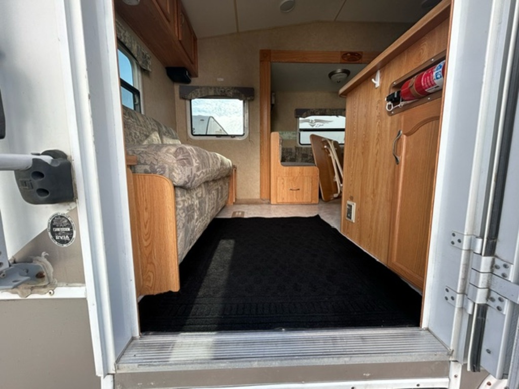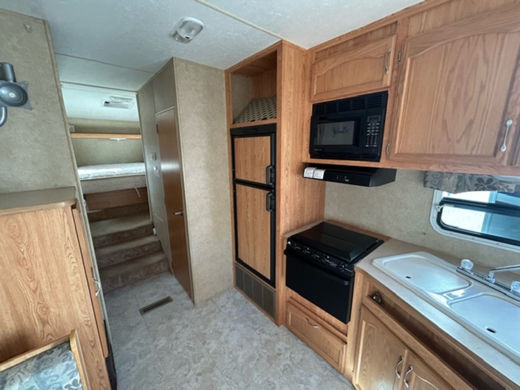 Options : Réservoir de propane, Climatiseur au plafond, Climatiseur conduit central, Douche extérieure, Échelle, Lit queen-size, Prise électrique, Cric électrique, Détecteur LPG/CO2, Chaine stéréo, Prise cable, Micro-onde, Cuisinière, Four, Hotte, Fourneau, Auvent