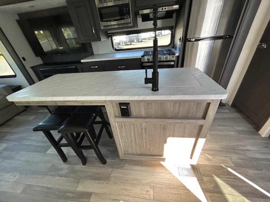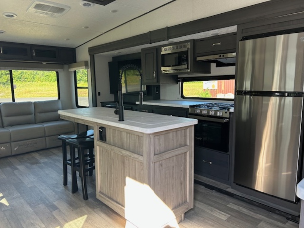 Options : Jantes aluminium, Convertisseur de courant continu, Réservoir de propane, Climatiseur au plafond, Climatiseur conduit central, Roue de secours, Douche extérieure, Douche, Toilette, Lit queen-size, Canapé-lit, Prise électrique, Cric électrique, Détecteur LPG/CO2, Téléviseur, Chaine stéréo, Prise cable, Antenne pour téléviseur, Micro-onde, Cuisinière, Four, Hotte, Fourneau, Plomberie isolée, Chauffe-eau, Chauffe-eau à allumage direct