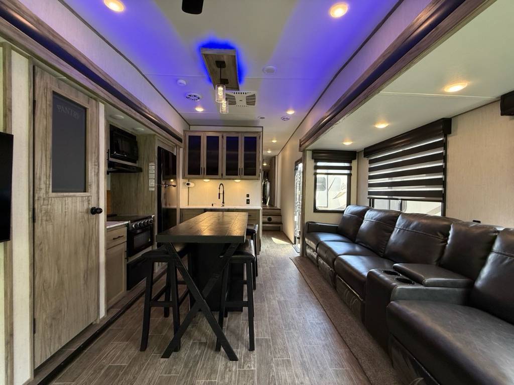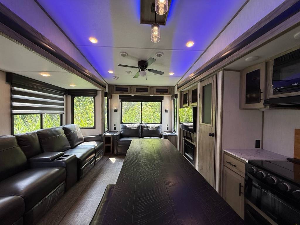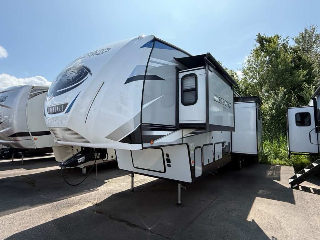 Forest River Cherokee Arctic Wolf 3880 2021Fifht Wheel – Forest River 3380 Cherokee Artic Wolf 2021 - Le Forest River Cherokee Arctic Wolf 3880 Suite (2021) est une roulotte de luxe conçue pour offrir un maximum de confort, d’espace et d’autonomie lors de vos escapades en nature. Voici ses 5 points forts à retenir : Dimensions & Capacités : • Longueur totale : 43.17 pieds • Poids à sec : 10 678 lbs • Réservoir d’eau douce : 49 gal • Réservoirs d’eaux usées : 105 gal • Couchages : Jusqu’à 8 personnes 5 caractéristiques principales : • Très grand et spacieux - Ce VR est très grand, avec plusieurs sections qui s’ouvrent sur les côtés pour offrir encore plus d’espace à l’intérieur. On s’y sent comme dans un petit appartement. • Confort pour toute la famille - Il peut accueillir jusqu’à 8 personnes grâce à un grand lit, des lits superposés et un canapé qui se transforme en lit. Parfait pour une famille ou un groupe d’amis. • Ambiance chaleureuse - À l’intérieur, on retrouve une cuisine avec un îlot central, un foyer électrique pour une belle ambiance, et des fauteuils confortables avec chauffe et massage. • Bien équipé pour toutes les saisons - Que ce soit l’hiver ou l’été, il est bien isolé, chauffé et climatisé pour rester confortable toute l’année. • Autonome pour le camping - Il est équipé de réservoirs d’eau et de bonbonnes de propane, ce qui permet de camper plusieurs jours sans avoir besoin de se brancher tout de suite. En résumé, ce modèle est idéal pour ceux qui recherchent un VR spacieux, confortable et bien équipé, que ce soit pour de courts séjours ou des aventures prolongées. Il combine praticité, confort et ambiance chaleureuse pour des souvenirs inoubliables en famille ou entre amis. *** Prendre note que les photos et les options décrites peuvent différées *** Toute l'équipe de Centre du VR est fière de vous présenter le plus vaste inventaire de véhicules récréatifs neufs et d'occasions à vendre au Québec. Vous y trouverez notamment les marques Columbus, Rockwood, Impression, Kodiak, Coleman, Cruiser RV, Flagstaff, E-Pro, Springdale, Sunset Trail, Cougar, Chaparral, Bontrager Outdoors, motorisés Axis, Hurricane, Outlaw, Coachmen Cross Trail, Prism, Echelon, Fleetwood, Four winds, Compass, Beyond, Nova et Pixel. Remorques N&N, Apogée et Armorteck sont aussi disponibles. En inventaire pour vous, la série de génératrices Ducar. Vous avez un coup de coeur ? Envoyez-nous une demande d'information. Financement sur place. N'oubliez pas également que rien ne vaut une visite du modèle qui vous intéresse pour vous aider à prendre une décision éclairée. Passez donc nous voir afin de jeter un coup d'oeil plus détaillé à nos caravanes et caravanes à sellettes neuves.