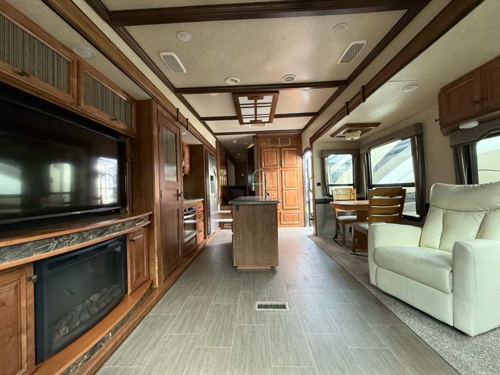 Heartland Big Country 3560SS 2018 Fifth Wheel Big Country 3560SS 2018 Elle mesure 40,06pi' et pèse 13 420 lbs Cet unité possède 2 extensions, une chambre des maîtres avec lit Queen et rangement, une salle de bain complète, un grand salon disposant d'un canapé théâtre, un canapé-lit, un foyer électrique et un téléviseur. Cuisinière avec fourneau, micro-onde et réfrigérateur résidentiel double porte. Îlot central avec lavabo intégré. Air climatisé, fournaise, prises électriques Extérieur en fibre de verre, auvent rétractable, réservoir d'eau fraîche de 65 gal. et d'eaux usés de 135 gal. *** Prendre note que les photos et les options décrites peuvent différées *** Toute l'équipe de Centre du VR est fière de vous présenter le plus vaste inventaire de véhicules récréatifs neufs et d'occasions à vendre au Québec. Vous y trouverez notamment les marques Columbus, Rockwood, Kodiak, Coleman, Cruiser RV, Flagstaff, E-Pro, Springdale, Sunset Trail, Cougar, Chaparral, Bontrager Outdoors, motorisés Axis,Hurricane, Outlaw, Coachmen Cross Trail, Prism, Echelon,Fleetwood, Four winds, Beyon, Nova, Patriot et Embassy Dolphin. Remorques N&N, Apogée et Armorteck sont aussi disponibles. En inventaire pour vous, la série de génératrices Ducar. Vous avez un coup de coeur ? Envoyez-nous une demande d'information,financement sur place. N'oubliez pas également que rien ne vaut une visite du modèle qui vous intéresse pour vous aider à prendre une décision éclairée. Passez donc nous voir afin de jeter un coup d'oeil plus détaillé à nos caravanes et caravanes à sellettes neuves.