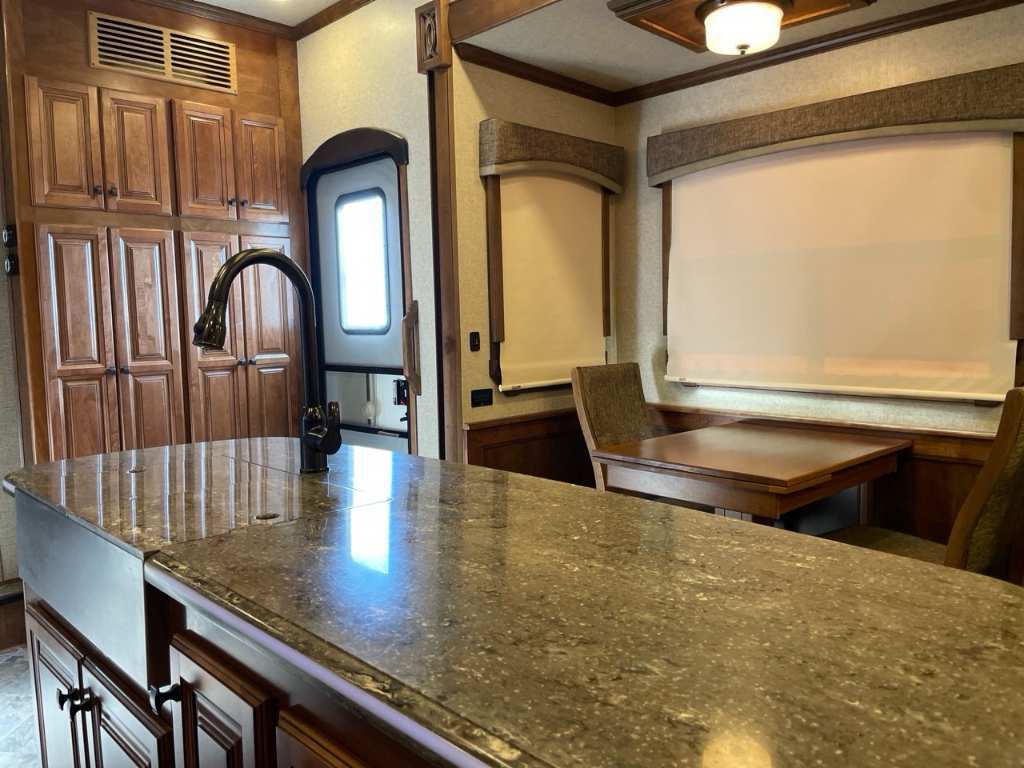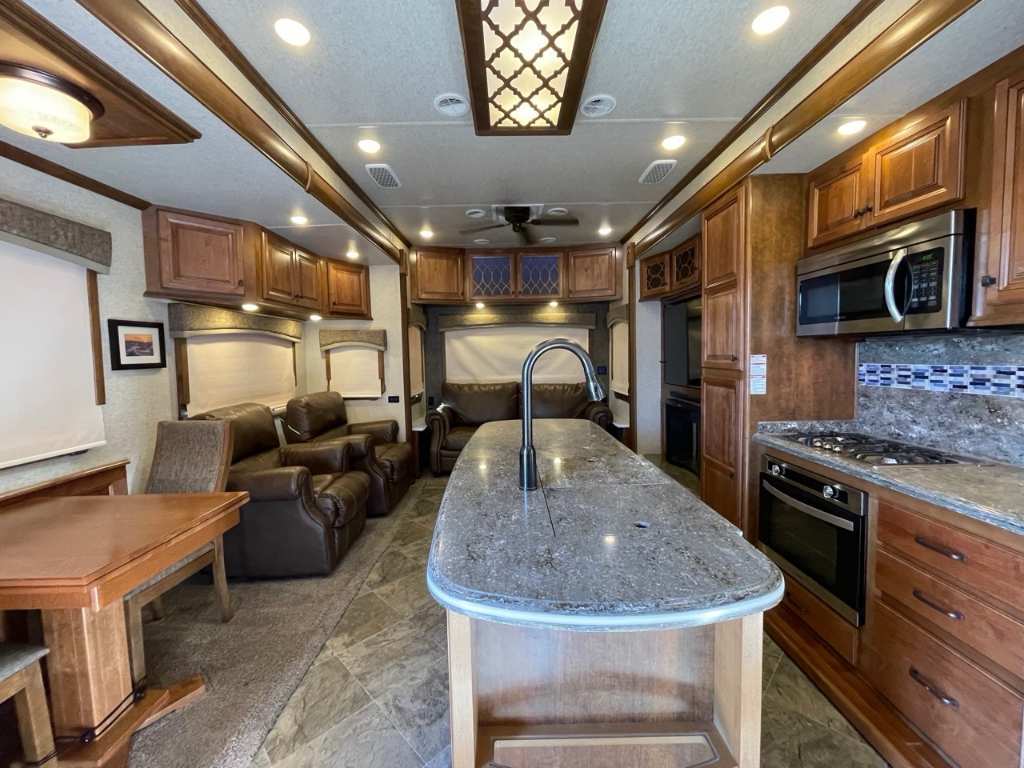 HEARTLAND OSHKO 2018 Heartland Landmark Oshkosk 2018 Belle grande Fifth Wheel Landmark Oshkosk 2018 Elle mesure 42.8'' et pèse 14643 LBS Elle possède une chambre des maîtres avec lit queen, une grande cuisine avec table et 4 chaises, cuisinière 4 brûleurs, fourneau, hotte, micro-onde et réfrigérateur résidentiel. Canapé théâtre, canapé-lit, téléviseur et foyer électrique au salon. Salle de bain complète avec douche, toilette et vanité. Extérieur Fullpaint en fibre de verre avec auvent rétractable électrique, réservoir d'eau douce de 80 gal., réservoirs d'eaux usés d'une capacité de 113.5 gal. et réservoir de propane. Centre du VR : Votre expert en véhicules récréatifs au Québec Découvrez le plus vaste inventaire de VR neufs et d'occasion au meilleur prix. Que vous cherchiez une roulotte, une caravane à sellette (fifth wheel), une caravane-portée, un motorisé ou une remorque, notre équipe vous propose les plus grandes marques : Roulottes et Fifth Wheels : Rockwood, Flagstaff, Cougar, Springdale, Sunset Trail, Chaparral, Columbus, Impression, Kodiak, Coleman, E-Pro, Cruiser RV. Motorisés (Classe A, B, C) : Axis, Hurricane, Fleetwood, Four Winds, Coachmen Cross Trail, Prism, Echelon, Outlaw, Beyond, Nova. Remorques et Équipements : NN, Apogée, Armorteck et génératrices Ducar ou Cummins. Bien plus que de la vente : Un service complet Département de pièces et boutique : Un inventaire massif de pièces de remplacement et d'accessoires de camping pour améliorer votre confort. Service et réparation : Un centre de service spécialisé pour l'entretien et la réparation de vos unités, assuré par des techniciens experts. Financement : Profitez de nos solutions de financement avantageuses directement sur place. Un modèle vous intéresse ou vous avez besoin d'un entretien ? Contactez-nous pour une demande d'information ou passez nous voir en succursale pour une visite ! Note : Les photos et options peuvent différer de la réalité.