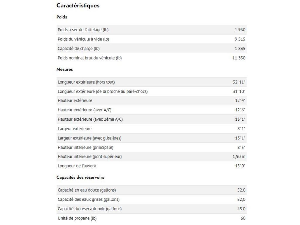 | Rallonges | N/A |