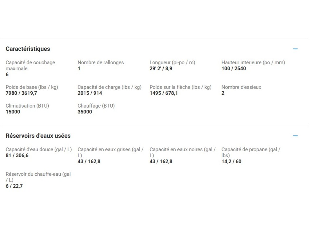 | Rallonges | N/A |
