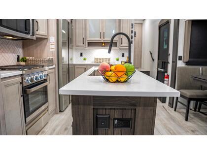 CARAVANE À SELLETTE KEYSTONE Montana High Country 331RL 2025 neuf à vendre Montana High Country 331RL Le Montana High Country 331RL est un Fifth Wheel de luxe qui allie design moderne et fonctionnalité. Ce modèle est conçu pour offrir un espace de vie confortable et pratique, idéal pour les familles ou les voyageurs recherchant un équilibre entre élégance et simplicité. Caractéristiques principales : Salon spacieux : Le salon comprend un canapé confortable, un foyer électrique et de grandes fenêtres pour une ambiance lumineuse et accueillante. Cuisine fonctionnelle : La cuisine est équipée d'un îlot central avec bar, d'un réfrigérateur, d'un four micro-ondes, d'une cuisinière à gaz et d'un évier en acier inoxydable. Les placards et tiroirs offrent un espace de rangement généreux. Chambre principale : La chambre principale est située à l'avant et comprend un lit queen ou king, une commode, des rangements intégrés et une télévision. La salle de bain attenante est équipée d'une douche, d'un lavabo et d'une toilette. Espace polyvalent : Un espace multifonctionnel à l'arrière peut servir de bureau, de coin détente ou de zone de stockage supplémentaire. Salle de bain supplémentaire : Une deuxième salle de bain complète est située à l'arrière, parfaite pour les invités ou les membres de la famille. Terrasse extérieure : L'unité dispose d'une terrasse extérieure avec un auvent rétractable, idéale pour profiter du plein air. Dimensions et capacités : Longueur : Environ 37 pieds (11,3 mètres) Poids nominal brut (PNBV) : Variable selon les options, généralement autour de 12 000 à 14 000 livres (5 443 à 6 350 kg) Capacité de couchage : Jusqu'à 6 personnes Les photos et visites virtuelles et fiches produits sont à titre indicatif et sans inscription. Pour vous assurer de l'exactitude de toutes les caractéristiques et fonctionnalités du produit, veuillez vous référer à l'un de nos conseillers. Veuillez vous référer à l'un de nos conseillers de vente qualifiés. Ils seront ravis de vous aider à trouver le produit qui répondra le mieux à vos besoins.