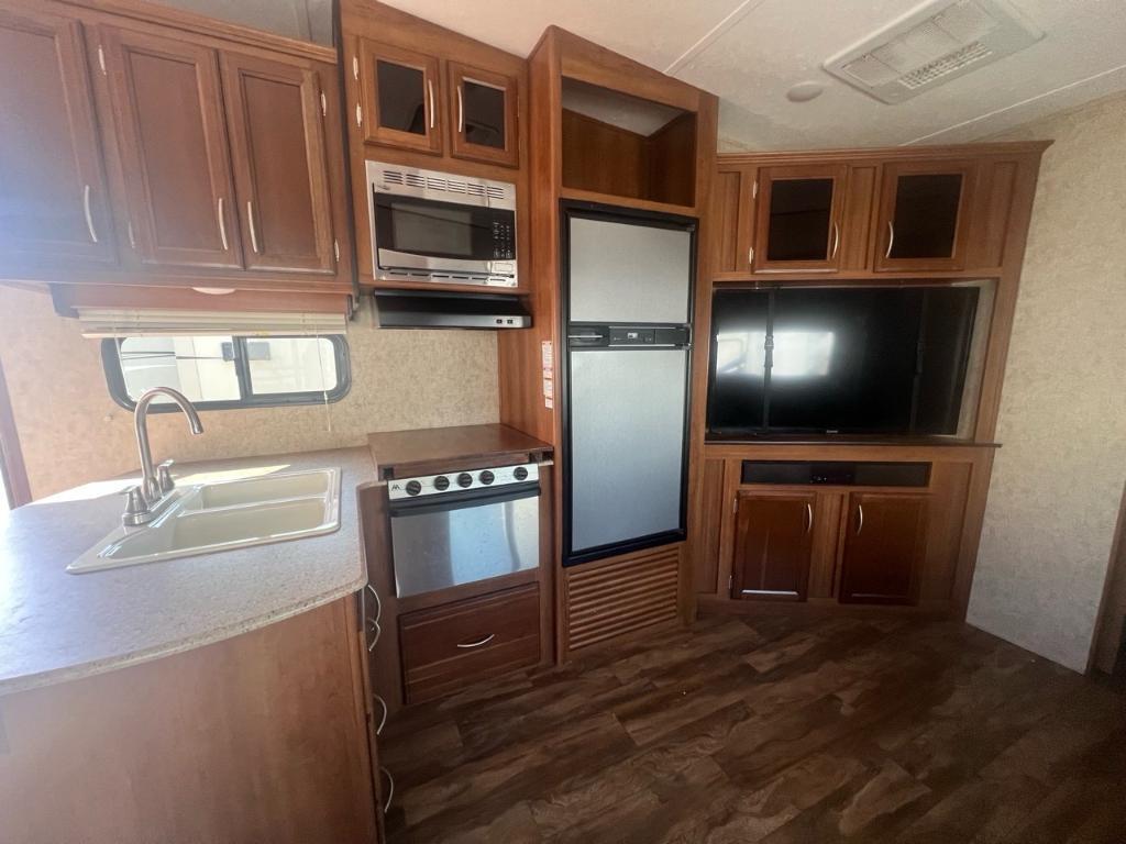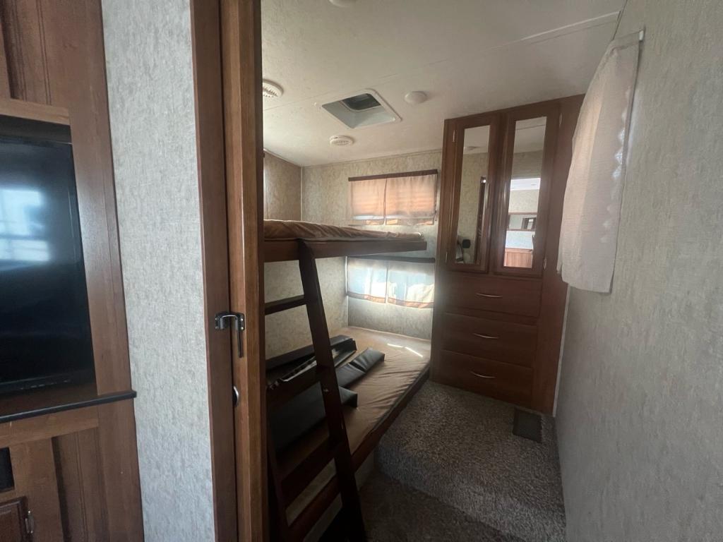KEYSTONE RV CRUSADER 29BH 2018 Longueur 35,83 pi (430 po) Largeur 8 pi (96 po) Hauteur 11,5 pi (138 po) Poids Poids sec 8 317 livres Capacité de charge utile 1 790 livres PNBV 10 107 livres Poids d'attelage 1 307 livres Réservoirs de rétention Nombre de réservoirs d'eau douce 1 Capacité totale du réservoir d'eau douce 60,0 gal. Nombre de réservoirs de rétention d'eaux grises 1 Capacité totale du réservoir d'eaux grises 35,0 gal. Nombre de réservoirs de rétention des eaux noires 1 Capacité totale du réservoir d'eaux noires 35,0 gal. Réservoir(s) de propane Nombre de réservoirs de propane 2 Capacité totale du réservoir de propane 14,2 gal. Capacité totale du réservoir de propane 60 livres. Longueur de l'auvent 16 pi (192 po) électrique. Configuration de la table de cuisine Banquettes. Mode d'alimentation du réfrigérateur Électrique / Propane. Peux coucher 8 ppersonnes. Centre du VR : Votre expert en véhicules récréatifs au Québec Découvrez le plus vaste inventaire de VR neufs et d'occasion au meilleur prix. Que vous cherchiez une roulotte, une caravane à sellette (fifth wheel), une caravane-portée, un motorisé ou une remorque, notre équipe vous propose les plus grandes marques : Roulottes et Fifth Wheels : Rockwood, Flagstaff, Cougar, Springdale, Sunset Trail, Chaparral, Columbus, Impression, Kodiak, Coleman, E-Pro, Cruiser RV. Motorisés (Classe A, B, C) : Axis, Hurricane, Fleetwood, Four Winds, Coachmen Cross Trail, Prism, Echelon, Outlaw, Beyond, Nova. Remorques et Équipements : NN, Apogée, Armorteck et génératrices Ducar ou Cummins. Bien plus que de la vente : Un service complet Département de pièces et boutique : Un inventaire massif de pièces de remplacement et d'accessoires de camping pour améliorer votre confort. Service et réparation : Un centre de service spécialisé pour l'entretien et la réparation de vos unités, assuré par des techniciens experts. Financement : Profitez de nos solutions de financement avantageuses directement sur place. Un modèle vous intéresse ou vous avez besoin d'un entretien ? Contactez-nous pour une demande d'information ou passez nous voir en succursale pour une visite ! Note : Les photos et options peuvent différer de la réalité.