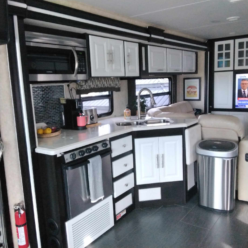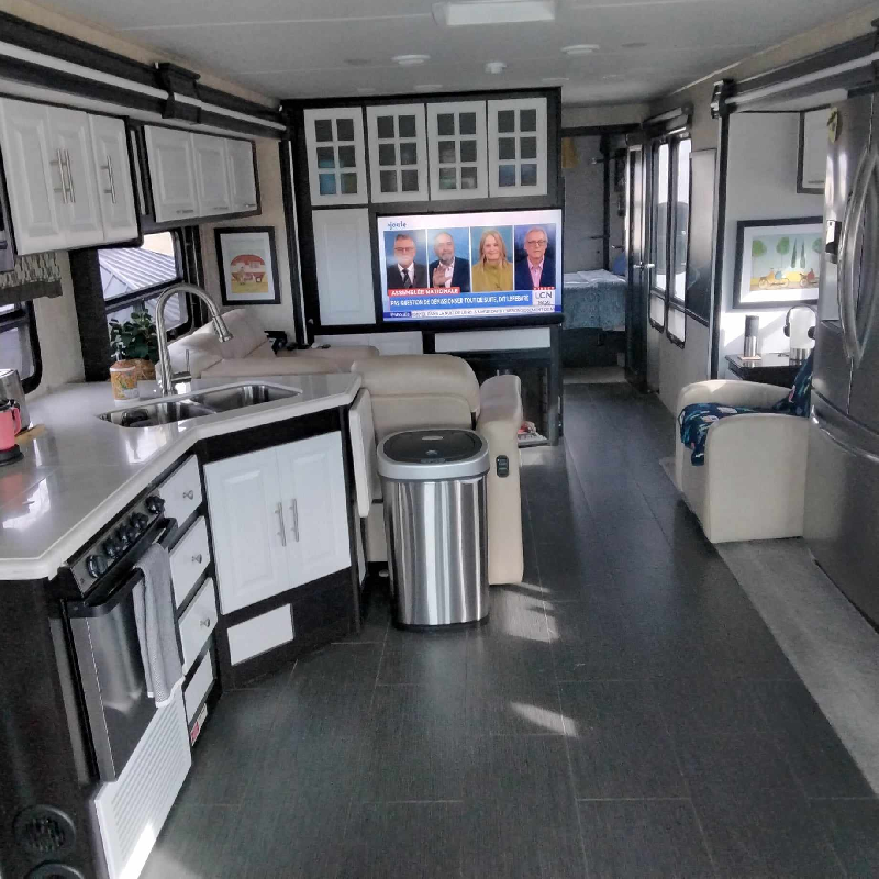 À qui la chance ! Faut voir ! 119 000$ Négociable Après 12 ans comme « fulltimer » on ferme ce livre pour en ouvrir un autre ! Motorisé Georgetown 2017 modèle 377 XL 38 pieds Ford V10 - 53000 kms Décoré au goût du jour Génératrice 5500w 2 airs climatisés et thermopompes 2 chauffages au gaz - 1 foyer électrique Réfrigérateur de maison 23pc Laveuse/sécheuse combinés Sièges avant refaits à neuf Nouveau radio Android 12 pouces pour caméra et musique TV 55 pouces intelligente neuve Section dînette refaite à neuf avec rangement et portes peintes en blanc par un ébéniste Matelas queen neuf (valeur de 1200$) 2 ventilateurs (fan) de plafond 4 batteries pour l'habitation au gel, un an Auvent de 20 pieds neuf (valeur 4000$) Full paint 119 000$ - toute offre raisonnable sera acceptée !