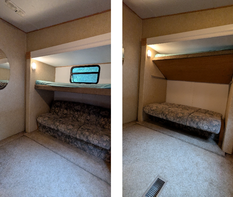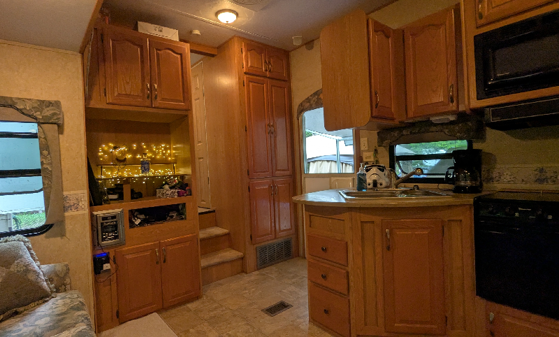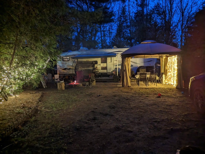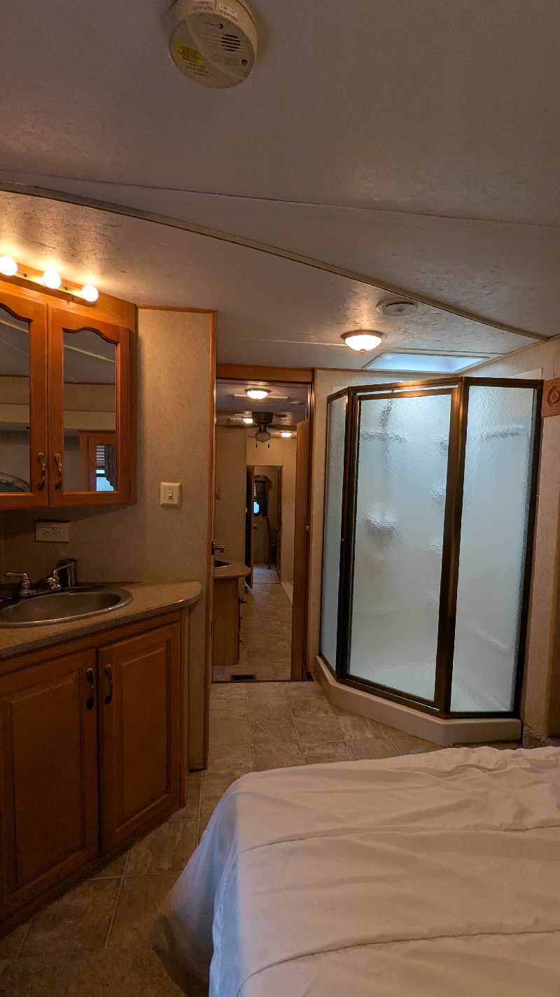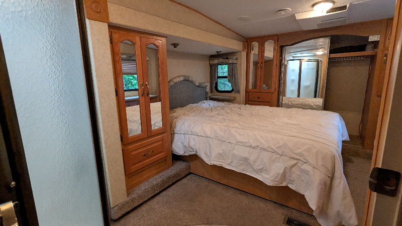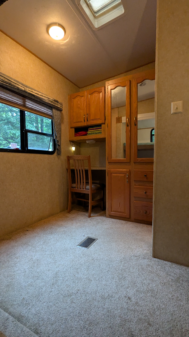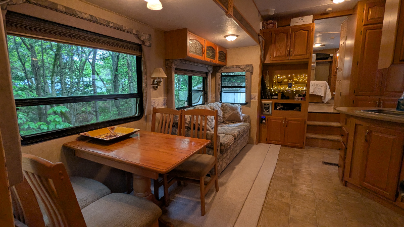 Caravane à sellette (fifth wheel) situé au Camping Choisy, saison 2025 payée au complet (valeur de 3500$). Modèle Forest River Sierra, 31 pieds, 2006, très spacieuse, 3 extensions (les 2 chambres et salon). 1 chambre fermée avec un lit double, garde-robe, beaucoup de rangement, douche et toilette. 1 chambre fermée avec un lit supposé, divan lit et petit bureau, garde-robe. 1 divan lit dans le salon. Inclus: BBQ, gazebo, set de patio, balancelle, cabanon 10x12 avec grand frigo, accessoires de cuisine (vaisselle, chaudron, ustensiles)