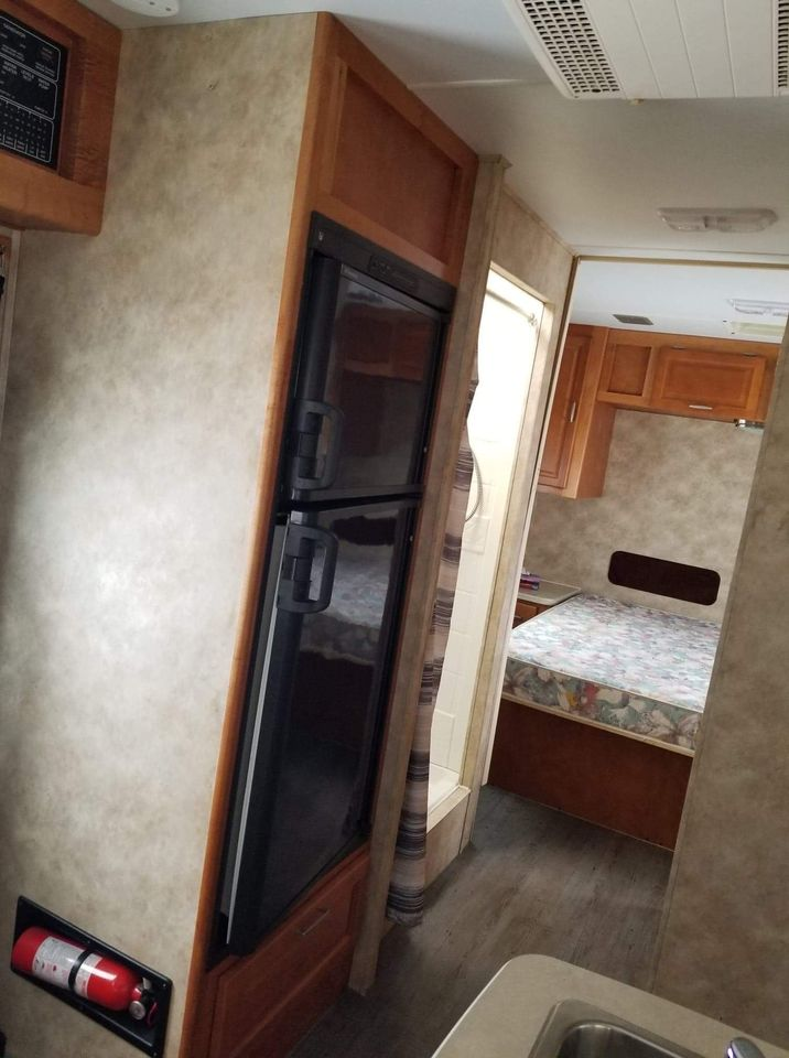 vehicule en bonne condition couche 8 persones 9 persone assis infiltration de la capucine rapport inspection disponible fait pas concessionaire VR peut servir comme cela pour l'istant car pas de fuite a l'interieur seulement le fibre de verre exterieur est délaminer par endroit le rapport a estimer a moin de $6,000 .00 les reparations, pneu presque neuf michelin LTX micro onde,chauffage gaz et electrique ,cuisiniere avec fou,r frigo propane ou electreique 12v et 120 v,air climatisé tout est fonctionel equipé de stabilisateurs arriere et plusieurs equipements inclus