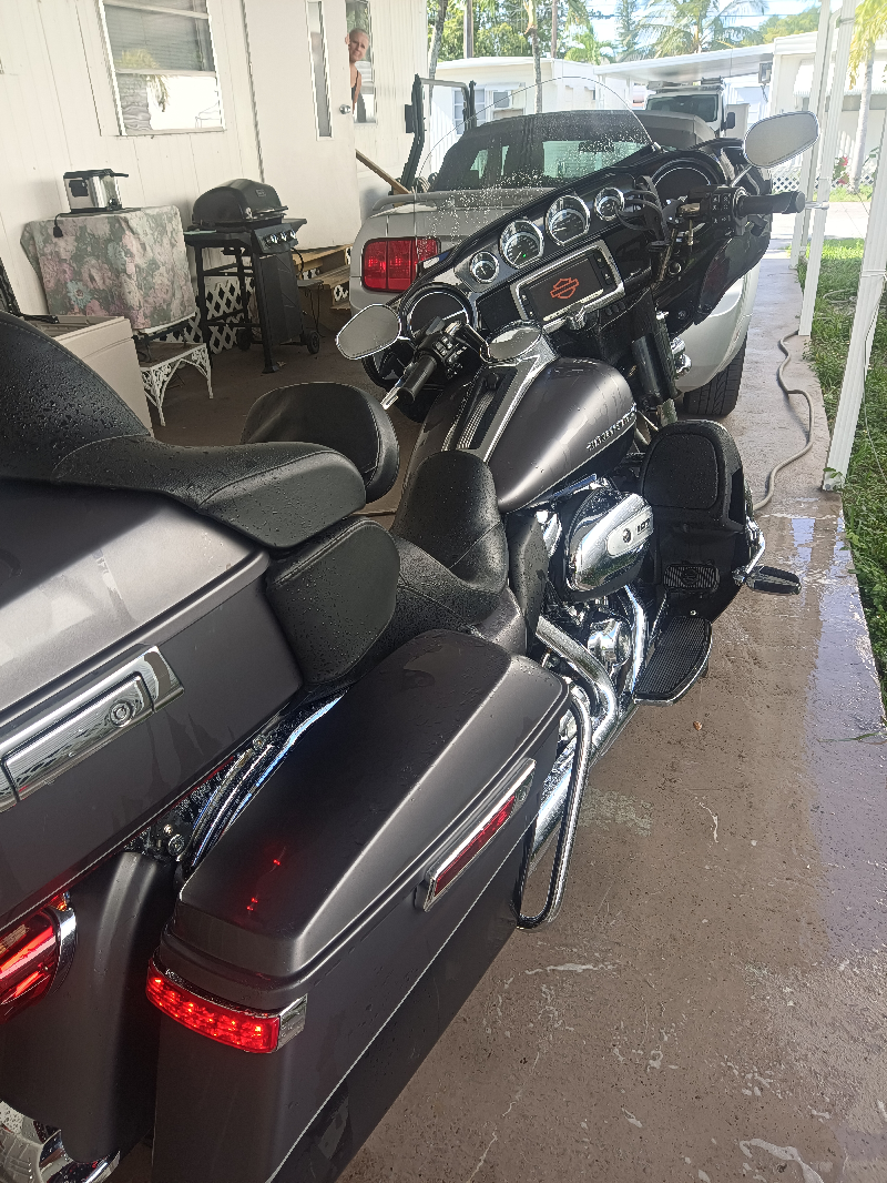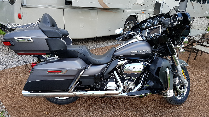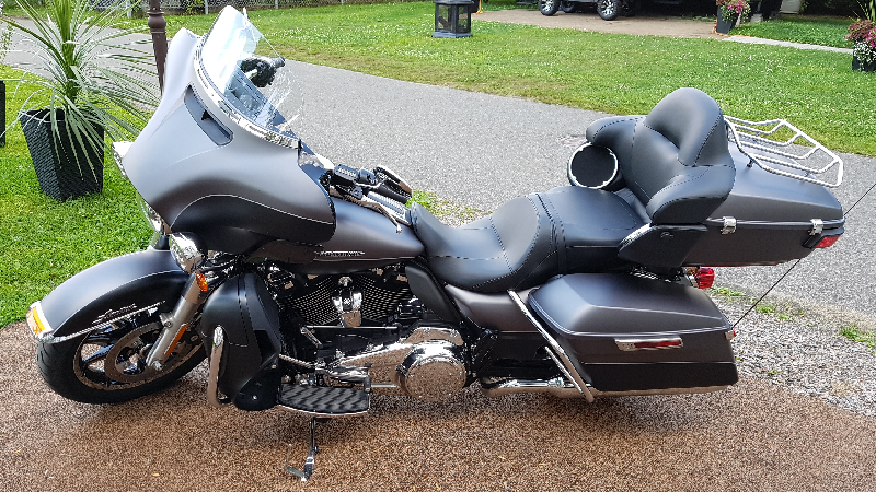 FLHTKL Gris et noir mat (Semble toujours propre). Il y a un reculons sur cette moto (Vraiment impayable). Toujours à l'huile synthétique depuis l'achat. Moteur vtwin 107CC Spécial Édition. Maximum torque: 114 ft/lbs @ 3250 rpm. Régulateur de vitesse. Transmission 6 vitesses. Suspension facilemment ajustable. Frein ABS. Encore garantie Chrome en plus