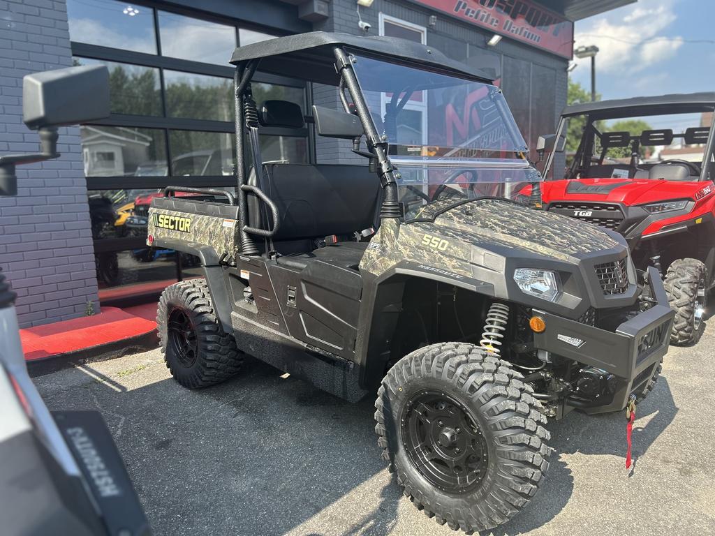 Découvrez le Hisun SECTOR 550 2022 chez Motosport Petite Nation à Thurso ! Ce UTV 4x4 robuste est équipé d'un moteur puissant de 546,0 CC, d'une transmission automatique et d'un système de refroidissement liquide. Parfait pour deux passagers,$7995 + taxes + $995 frais de destination et préparations (frais du manufacturier) il arbore un extérieur camo et une construction solide.