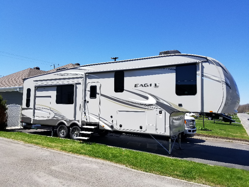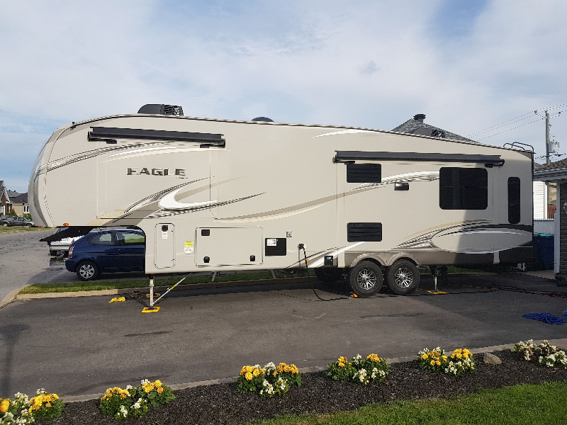 Tour guidé d'une 317RLOK avec les mêmes couleurs: https://www.youtube.com/watch?v=E41UqRnEwWQ -Longueur 36p 11po, poids 10565lbs -Garantie Protection VR Or transférable (valeur de 2300$) -Système auto-level -Fils 50amp - 2 airs climatisées de 15000btu et adaptateur 30amp -Système d'égoût Sanicon (aucun dégât et tout est fait en 5 min) -Maxair dans la SDB (500$) -Accès au frigo, SDB et chambre arrière en tout temps -Cuisine extérieure avec frigo-rangement-grill -Immense, garde-manger, garde-robe à l'entré, espace de rangement en dessous et armoires à profusion à l'intérieur -Frigo 12pi cube -Ilot avec évier double -Divan lit Queen - Lit king Matelas Polysleep neuf 2020 (1000$) -Foyer à DEL électrique 5000 BTU -3 annexes avec auvent protecteur (valeur 2500$) -2 auvents électriques -Fenêtre thermo -Caméra reculons - sellette rise 20000lbs goose neck. -Barre stabilisatrice aux les pattes. -Non fumeur - ajout marche solidstep Lipper (850$) - robinet SDB changé