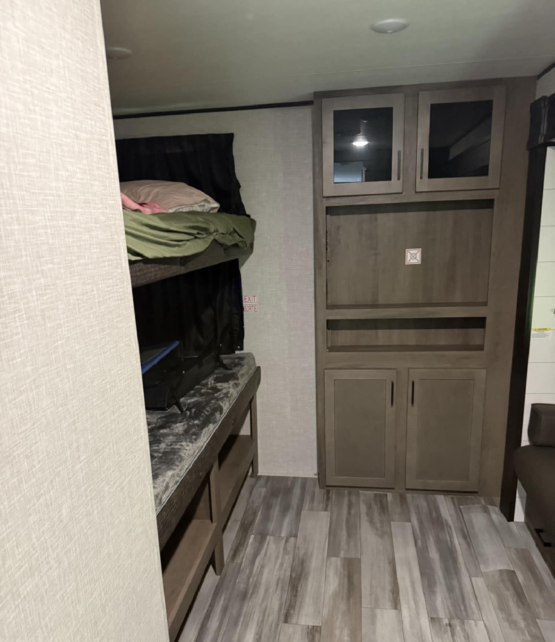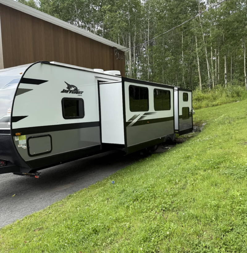 ROULOTTE JAY FLIGHT 2024 MODÈLE 324BH 33 PIEDS PLANCHER 36.4 HORS TOUT BANQUETTE EN U 4 BUNK BEDS 2 CHAMBRES FERMÉES CUISINE EXTÉRIEURE BBQ 2 EXTENSIONS EXTÉRIEUR FIBRE AUVENT 18 PIEDS ÉLECTRIQUE ÉVIER DOUBLE INTÉRIEUR CHIC BLANC ET NOIR COUCHE 8-10 PERSONNES POIDS 8566 LBS - VENTE DE PARTICULIER - OU FINANCEMENT DISPO * POSSIBILITÉ DE TRANSPORT * ROUYN-NORANDA, QC APPELEZ AU 418-932-6595