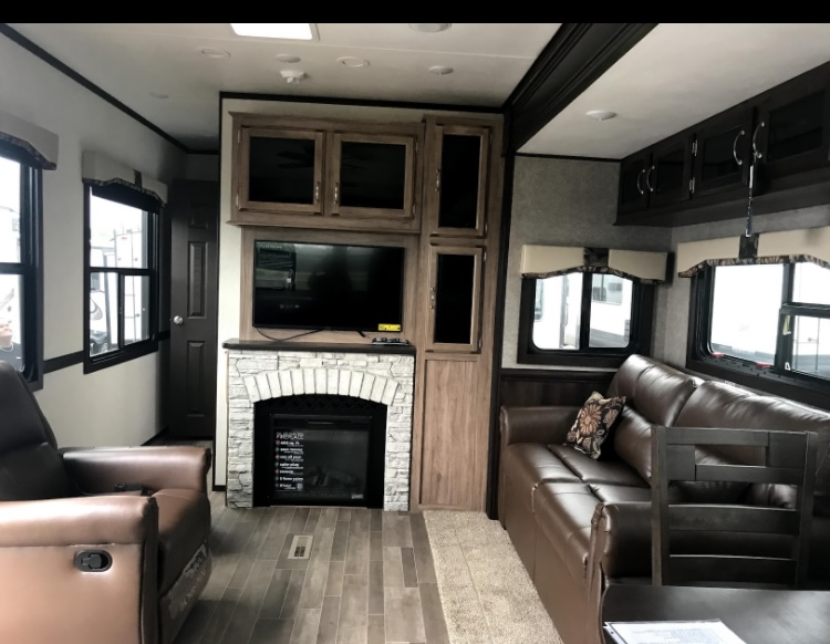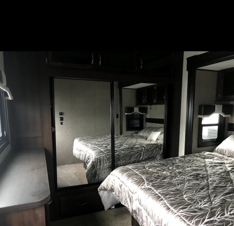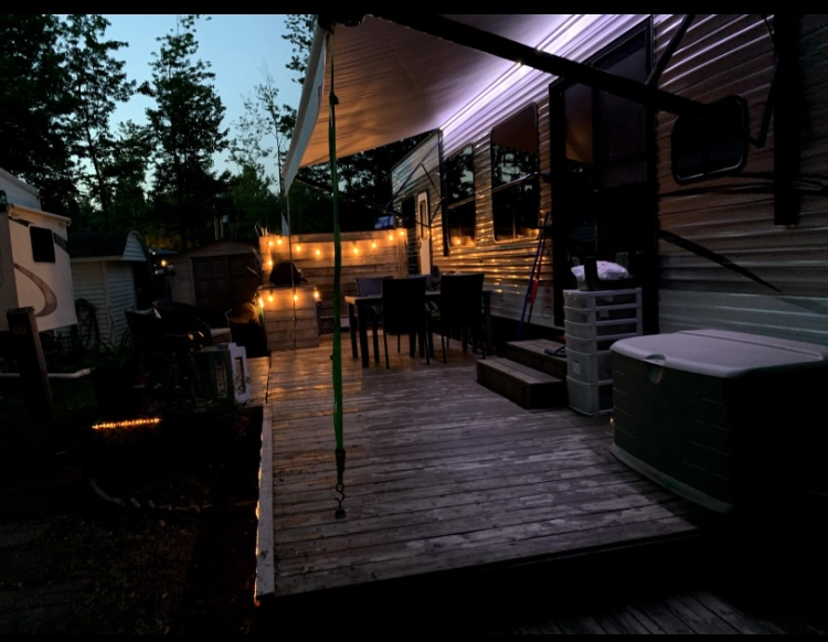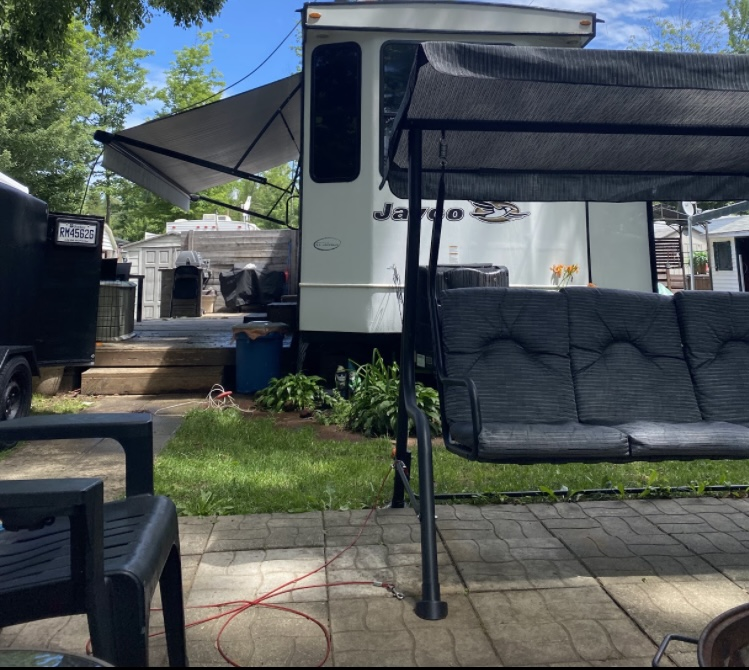 Modèle 40FKDS 2018, impeccable, terrain 23 camping Otamac, Lac-à-la-Tortue, Shawinigan. Terrain entièrement aménagé: grand patio, beaucoup de fleurs et grande terrasse de dalles. Inclus: set de patio, grande remise, BBQ, balançoire, foyer neuf, chaises extérieures et autres possibilités à discuter. Lit king, grande douche, foyer électrique, causeuse et fauteuil en cuir, 2 bancs de comptoir, grand comptoir en U, en Corian, intérieur de luxe, très lumineuse, fenêtre traitée contre le soleil pour protéger les meubles. Beaucoup de rangement. À voir! Le prix de la location du terrain est à discuter avec les propriétaires du camping. Aucune location de la roulotte possible.