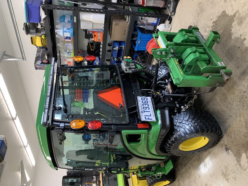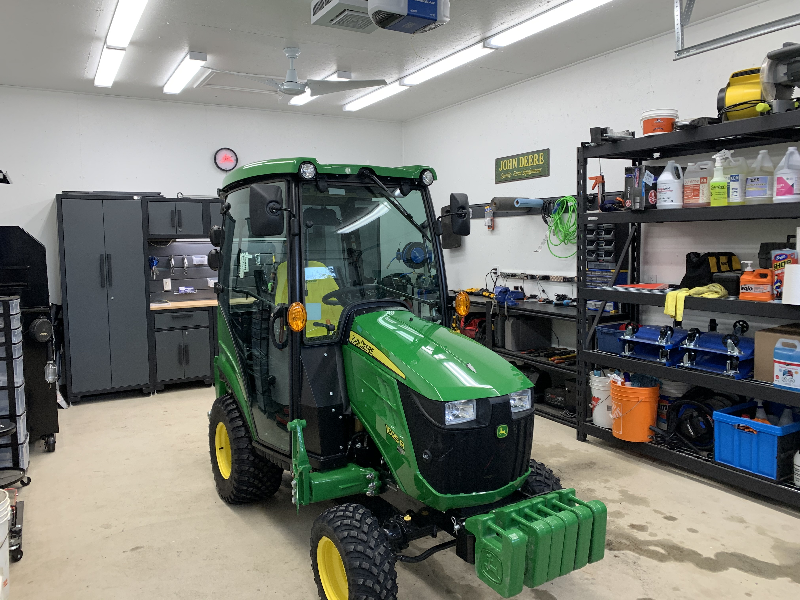 Tracteur John Deere 1025R 2020, transmission hydrostatique avec souffleur Frontier 1148 avec gratte a neige 54'' , cabine chauffer, gyrophares, attache remorque, 7 peser