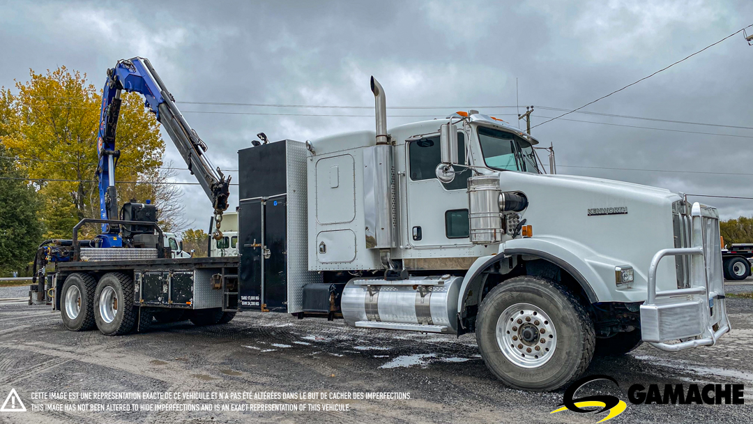 2007 KENWORTH T800 CAMION PLATEFORME AVEC GRUE ARTICULÉ