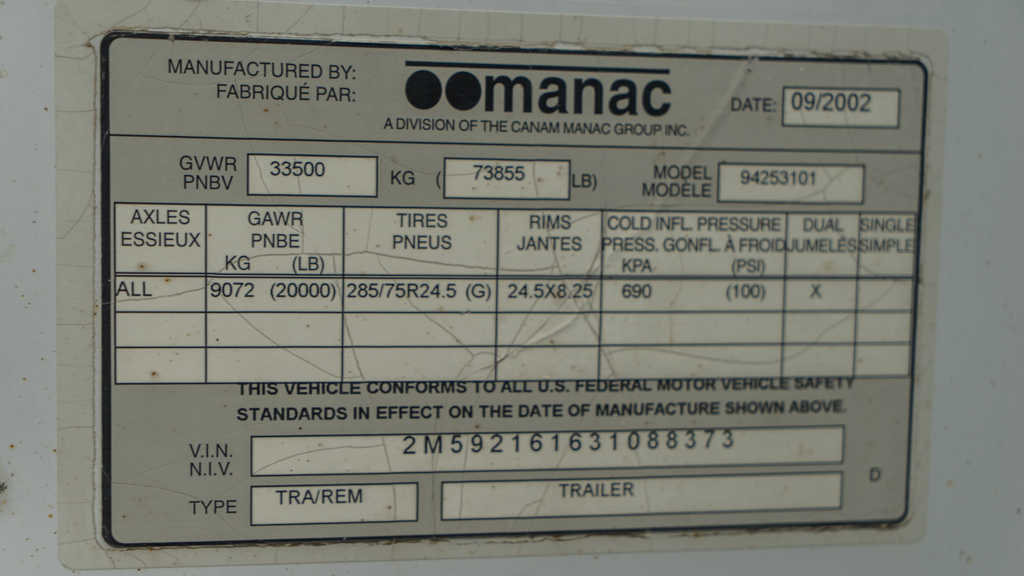2003 MANAC REMORQUE CHAUFFANTE 53'