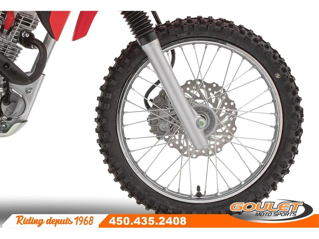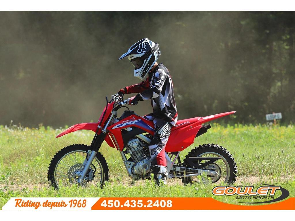 Moto Trail Honda CRF 125F 2023 \*\*\* Rabais de 500$ pour un prix final de 4299$ - Moto neuve avec la garantie complète Honda \*\*\* La moto CRF125 convient aux jeunes pilotes mais aussi aux adultes plus petit. Cette moto moderne possède un moteur légendaire reconnu pour sa fiabilité et l'injection de carburant élimine les problèmes de carburateur. La transmission à quatre vitesses et l'embrayage conventionnel offrent le contrôle d'une moto pleine grandeur. - Moteur fiable de 125cc à injection. - Démarreur électronique - Transmission manuelle 4 vitesses - Roue avant de 17pc et roues arrière de 14pc. - Cadre double poutre en acier - Frein à disque avant \*\*\* FRAIS DE TRANSPORT ET PRÉPARATION INCLUS DANS LE PRIX \*\*\* Cette unité est chez Goulet Moto Sports de Ste-Thérèse. Téléphonez au 450.435.2408 Possibilité de financement avec plusieurs institutions financières. 2ième chance au crédit disponible. Goulet Moto Sports est votre concessionnaire moto depuis 1968. Fier représentant officiel des marques HONDA, APRILIA, MOTO GUZZI, VESPA, PIAGGIO, KTM, NIU, SURRON et URAL pour le grand Montréal. Nous avons un énorme choix de moto usagés inspectées par nos professionnels. 2 adresses pour vous servir, soit à Sainte-Thérèse (450.435.2408) et Saint-Jérôme (450.431.6622). Goulet Moto Sports ne peut être tenu responsable d'une omission, d'un délai ou d'une erreur de transcription de l'information. Le prix affiché reflète la condition de l'unité. Pour différentes raisons les prix peuvent différer de ceux indiqués en ligne. Les données sont affichées à titre indicatif seulement et ne peuvent être considérées comme une information contractuelle. Nous vous encourageons vivement à nous consulter pour plus de détails avant de vous déplacer. Des frais tels que taxes, immatriculation, administrations ou autres peuvent s'appliquer. Essence, Transmission: Manuelle, 4 vitesses, Système de refroidissement: Refroidi à l'air, 1 cylindres, 125.0 CC, Garantie: 6 mois ---------------------- 2023 Honda CRF 125F Trail Motorcycle \*\*\* $500 discount for a final price of $4,299 - New motorcycle with full Honda warranty \*\*\* The CRF125 motorcycle is suitable for young riders as well as smaller adults. This modern motorcycle features a legendary engine renowned for its reliability, and fuel injection eliminates carburetor problems. The four-speed transmission and conventional clutch provide the control of a full-size motorcycle. - Reliable 125cc fuel-injected engine. - Electronic Starter - 4-Speed ??Manual Transmission - 17" Front Wheel and 14" Rear Wheel - Double Steel Beam Frame - Front Disc Brake \*\*\* TRANSPORTATION AND PREPARATION INCLUDED IN THE PRICE \*\*\* This unit is at Goulet Moto Sports in Ste-Thérèse. Call 450.435.2408. Financing available with several financial institutions. Second chance credit available. Goulet Moto Sports has been your motorcycle dealer since 1968. We are a proud official representative of the HONDA, APRILIA, MOTO GUZZI, VESPA, PIAGGIO, KTM, NIU, SURRON, and URAL brands in Greater Montreal. We have a huge selection of used motorcycles inspected by our professionals. We have two locations to serve you: Sainte-Thérèse (450.435.2408) and Saint-Jérôme (450.431.6622). Goulet Moto Sports cannot be held responsible for any omission, delay, or transcription error. The price displayed reflects the condition of the unit. For various reasons, prices may differ from those indicated online. The data displayed is for informational purposes only and should not be considered contractual information. We strongly encourage you to contact us for more details before visiting us. Fees such as taxes, registration, administration, and other charges may apply. Gasoline, Transmission: Manual, 4 speeds, Cooling System: Air cooling, 1 cylinders, 125.0 CC, Warranty: 6 mois Garantie : 6 mois.