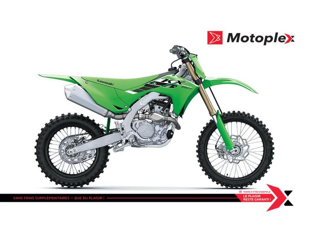 KX250X La nouvelle moto KX250X fait passer les courses de cross-country au niveau supérieur. Conçue pour les courses tout-terrain, des technologies avancées telles que la sélection du mode Power et le contrôle de traction Kawasaki (KTRC) s'associent à un châssis haute performance, un moteur plus puissant et des suspensions adaptées au tout-terrain pour équiper cette machine de course éprouvée dans les championnats pour les terrains les plus techniques. Gravissez les échelons rapidement et en toute confiance avec la moto conçue pour la victoire. Soyez le prochain sur la KX250X. La marque japonaise Kawasaki, largement connue pour ses motos et motomarines à performance inégalée, offre aussi des VTT et côtes-à-côtes tout aussi intéressants. motos et vtts non disponible a la succursale de St-Eustache GARANTIE PROLONGÉE jusqu'à 4 ans disponible et plan d’entretien Approbation au financement garanti. Motoplex se démarque par le meilleur département de crédit spécialisé, testez nous et Osez Rêver. PLEASE DON'T HESITATE TO CONTACT US, WE SPEAK ENGLISH AS WELL ! Nous prenons tout véhicule d’échange Prix Garanti. AUCUN FRAIS CACHÉS, prix affiché valide sur financement ou paiement comptant. *(taxe en sus) We speak English contact us. LIVRAISON PARTOUT AU Québec Mentions légales au financement, consultez notre site Internet. GARANTIE PROLONGÉE jusqu'à 4 ans disponible et plan d’entretien disponible uniquement chez groupe motoplex