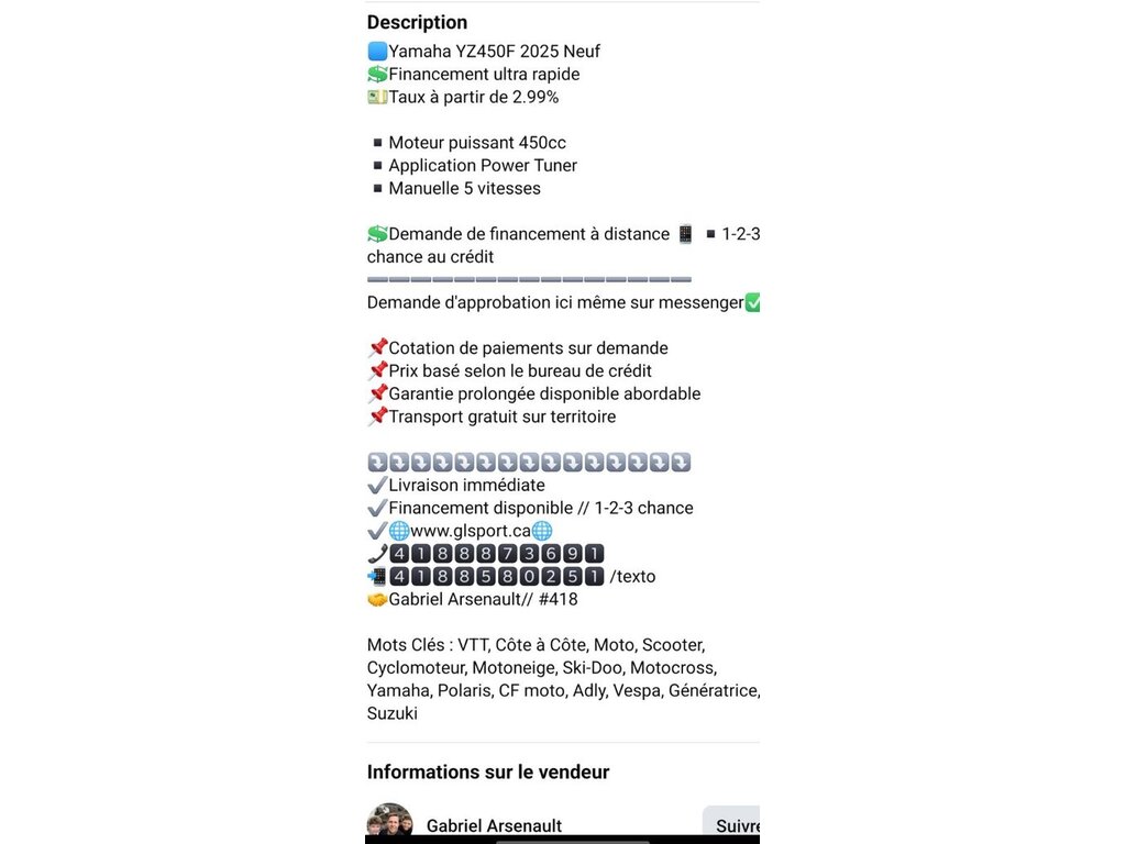 Annonce # 1372246 Motocross à vendre à Saint-Gervais : Yamaha N/A 2025 Saint-Gervais