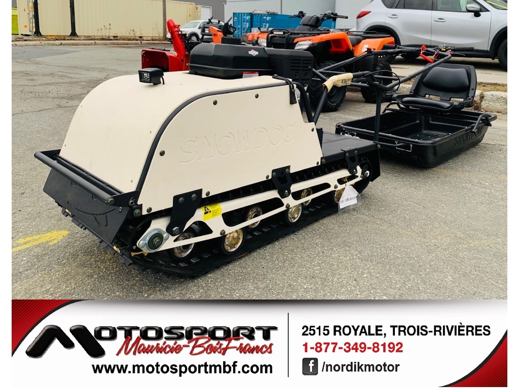 Snow Dog B13MER SPORT « 2022 » avec traineau et siège pivotant à seulement 33$* / semaine ! Amusez-vous au volant d’un Snow Dog avec moteur Briggs & Stratton 420cc en ajoutant un traîneau (valeur de 479$) et le siège pivotant (valeur de 419$) pour seulement 35$* / semaine. Le SNOW DOG est une véritable bête dans la neige avec sa chenille large et son puissant moteur Briggs & Stratton de 420cc garantit deux (2) ans. Vous pouvez facilement tirer plusieurs traîneaux en arrière remplis d’enfants, vous faire tirer en ski ou en snowboard ou confortablement dans le siège pivotant du traîneau Snow Dog. Le SNOW DOG deviendra votre meilleur compagnon pour vous amuser à la pêche sur le glace, au chalet, à la cabane à sucre ou dans toutes vos activités familiales hivernales. De plus, ce dernier est offert avec la lumière au LED pour une meilleure visibilité, un démarreur électrique, des poignées chauffantes et une nouvelle carrosserie en polymère solide et légère. Contactez-nous sans tarder pour l’obtenir de plus ample information ! L’équipe de MOTOSPORT MAURICIE BOIS-FRANCS 2515 Royale, Trois-Rivières, Québec, G9A 4L7 1-877-349-8192 www.motosportmbf.com * Transport, préparation inclus, taxes de ventes en sus. **Prêt ouvert avec terme de 84 mois à taux fixe **Certaines conditions s’appliquent. Garantie : Garantie 12 mois sur Snow Dog et 24 mois sur moteur Briggs & Stratton