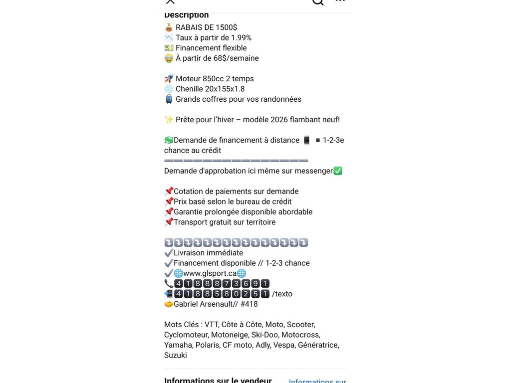 Annonce # 1372538 Motoneige à vendre à Saint-Gervais : Polaris N/A 2026 Saint-Gervais