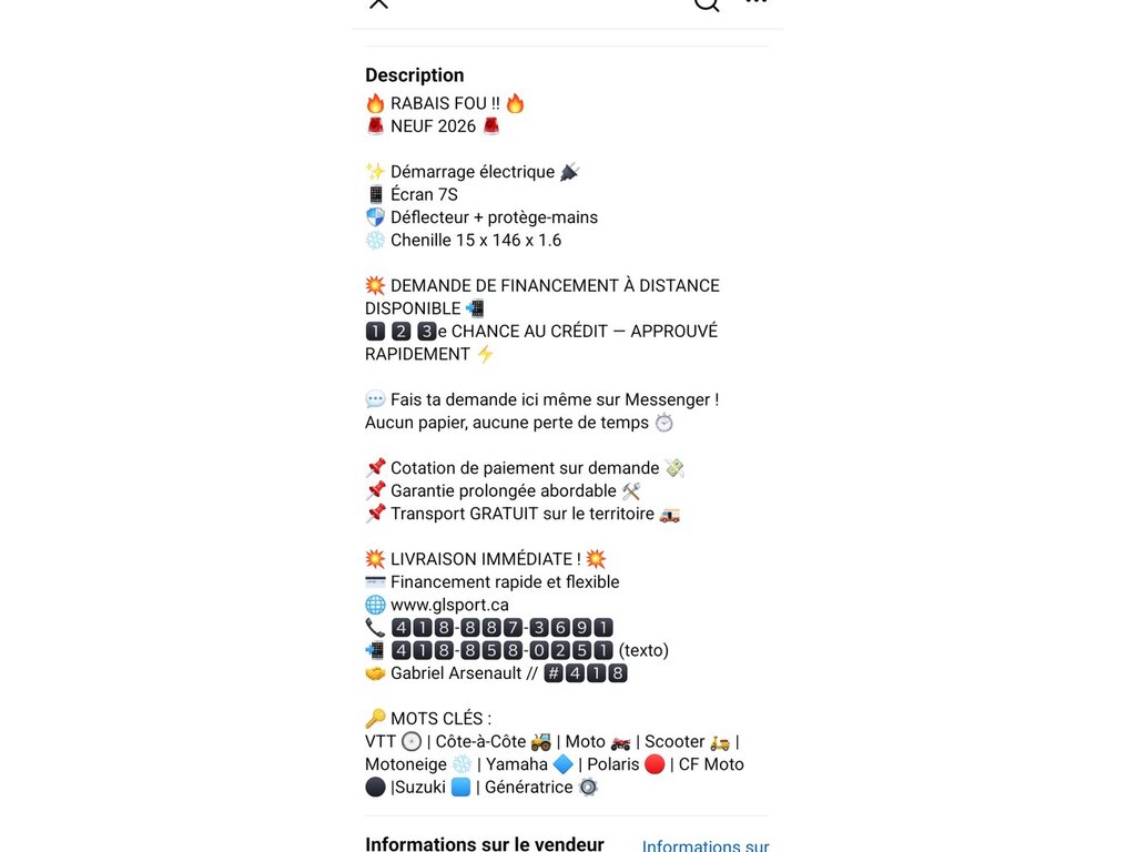 Annonce # 1372563 Motoneige à vendre à Saint-Gervais : Polaris N/A 2026 Saint-Gervais
